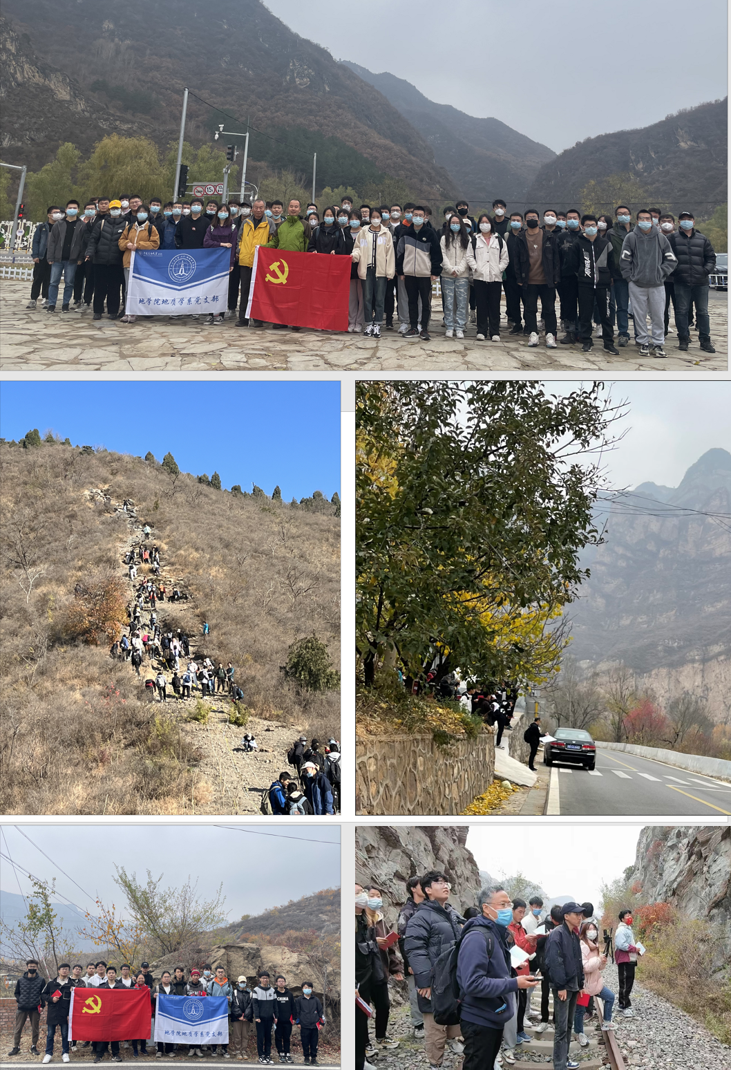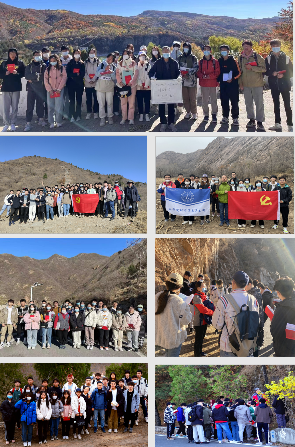 本次活動涉及3個學院、6個專業,共7支隊伍近800余人。在10月10日—11月7日期間,連續4個周末無休,老師們和同學們連續工作和學習31天,在昌平、延慶、門頭溝、房山等地區開展工作,先后走過了蟒山、軍都山、太平山、千家店、虎峪、鰲山、下葦甸、沙峪口、八角寨、妙峰山、白河堡水庫等地的野外露頭,用腳步丈量了每一條露頭剖面、用知識澆灌每一個莘莘學子,以不同形式共同學習領會和踐行黨的二十大精神,用心培養德智體美勞全面發展的社會主義建設者和接班人。