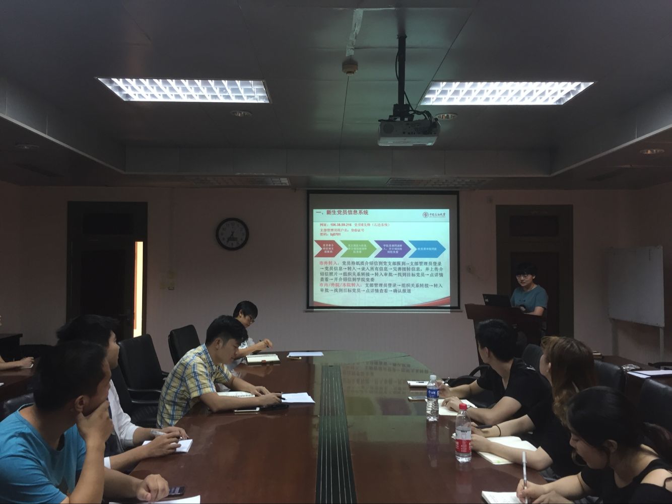 張粲對學生黨支部下半年的日常工作部署進行說明,對新生黨支部建設及黨員信息系統使用進行培訓,解答了黨員發展等相關業務問題。