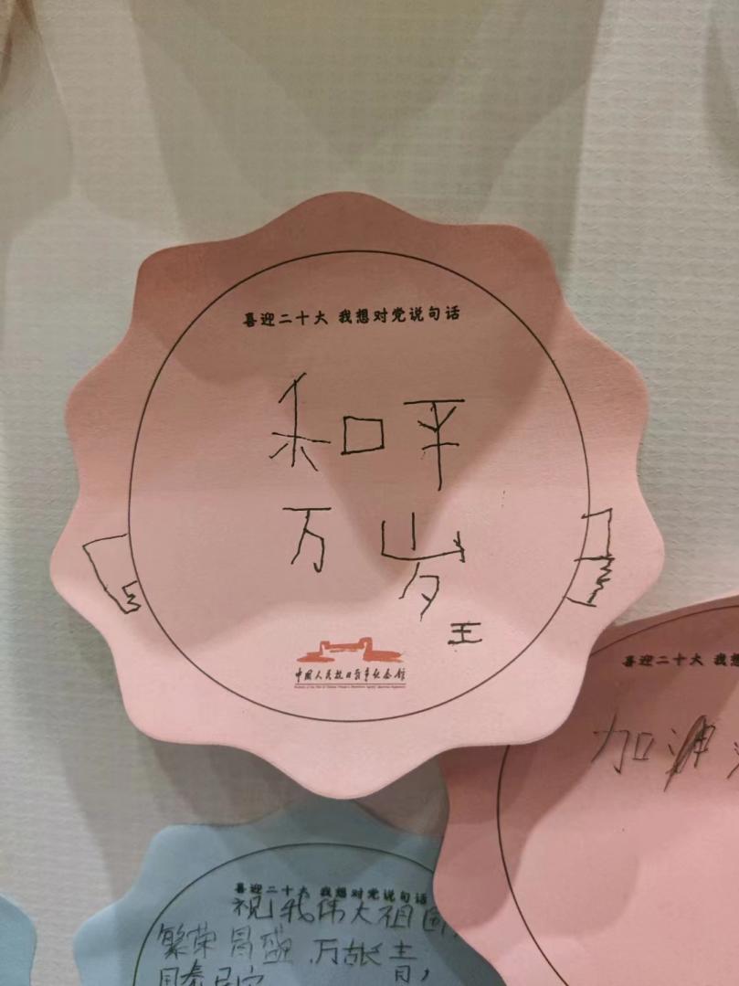 下午,黨支部前往北京市豐臺區(qū)參觀中國人民抗日戰(zhàn)爭紀念館。在一幅幅畫面、一段段影像、一件件實物中,各位師生重溫了中國?民同?本侵略者進?英勇?爭的光輝歷程與艱苦卓絕的抗戰(zhàn)之路,學習了英烈們不畏強暴的拼搏精神、舍?救國的奉獻精神、統(tǒng)?抗戰(zhàn)的團結精神、堅持到底的?強精神。當看到現(xiàn)場小朋友用稚嫩的筆觸寫下和平萬歲的話語時,大家不禁滿含欣慰,紛紛表示要銘記歷史、緬懷先烈,更要繼承、發(fā)揚他們的偉大精神。