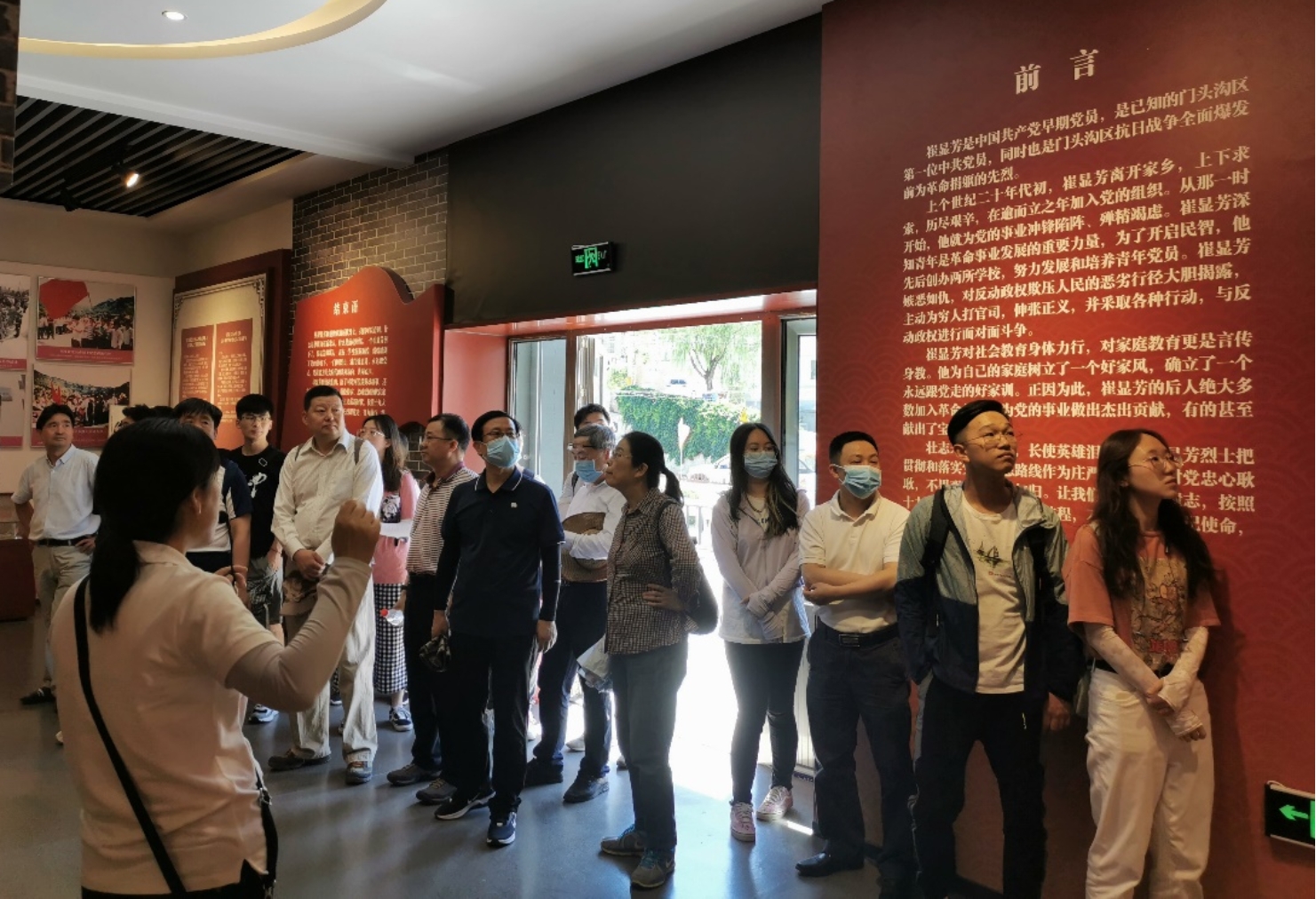 師生們首先抵達北京市門頭溝區(qū)雁翅鎮(zhèn)田莊村“京西山區(qū)中共第一黨支部”,在當(dāng)?shù)刂v解員的帶領(lǐng)下分別參觀了京西山區(qū)中共第一黨支部紀念館和崔顯芳烈士紀念館,了解京西中共基層黨組織在土地革命、抗日戰(zhàn)爭和解放戰(zhàn)爭的腥風(fēng)血雨中醞釀、創(chuàng)建、發(fā)展和成長的革命歷程,聆聽京西山區(qū)第一位共產(chǎn)黨員崔顯芳的生平事跡、革命生涯及崔氏家族一門四烈士的英雄事跡。后師生們又赴田莊高小黨支部舊址和崔顯芳故居,通過參觀京西山區(qū)第一個中共黨支部的所在地,以及崔顯芳烈士的生活環(huán)境樣態(tài),深入學(xué)習(xí)當(dāng)時的革命星火在京西點燃的歷程。