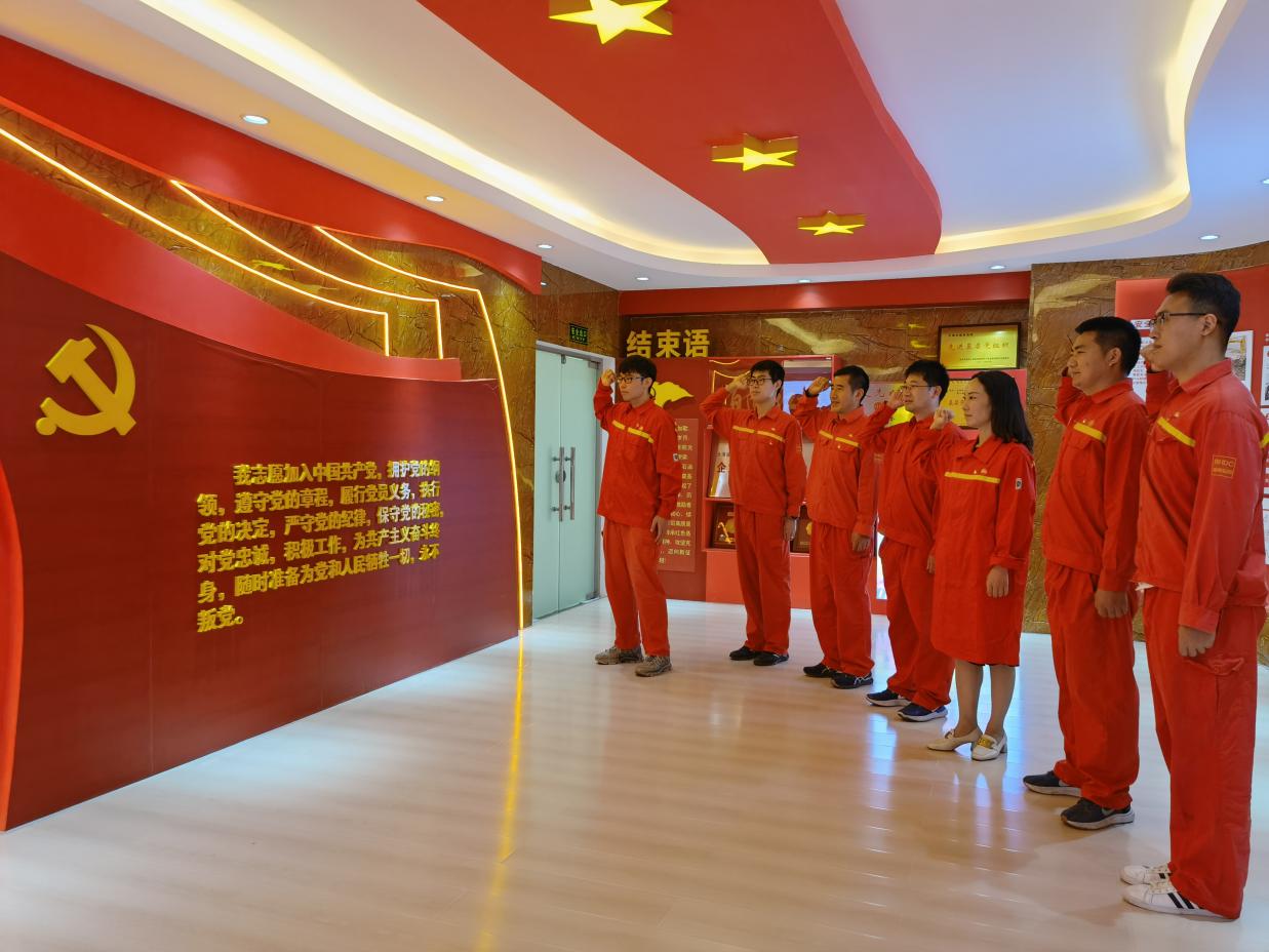 隨后在入黨誓詞墻前,在“精鑄匠心”開發(fā)地質(zhì)導(dǎo)學(xué)團隊黨支部副書記屈林博的帶領(lǐng)下,一行師生重溫入黨誓詞,面對黨旗,莊嚴(yán)宣誓!