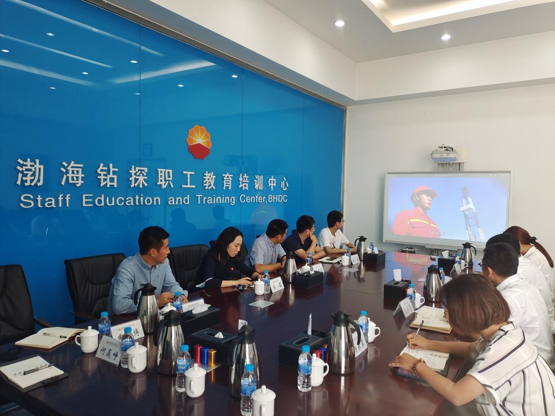 第三站來到渤海鉆探職工教育培訓(xùn)中心,培訓(xùn)中心黨委副書記劉永峰接待了王茹一行。劉永峰對王茹一行到訪表示熱烈歡迎。他指出,長期以來,渤海鉆探職工教育培訓(xùn)中心與中國石油大學(xué)形成了穩(wěn)定友好的合作關(guān)系和誠摯深厚的感情友誼。培訓(xùn)中心鉆井基地黨支部書記江澤邦結(jié)合基層黨建工作實際,系統(tǒng)闡述了培訓(xùn)中心深入推進基層黨建“三基本”建設(shè)與“三基”工作有機融合情況,通過實行黨政同管、同抓、同責(zé),極大的提高了培訓(xùn)中心的黨建與政策實施的效率。“全國黨建樣板支部”——油氣勘探與開發(fā)地質(zhì)系教工黨支部書記周勇從政治理論學(xué)習(xí)、人才培養(yǎng)、科學(xué)研究和社會服務(wù)四個方面,系統(tǒng)介紹了支部高質(zhì)量黨建引領(lǐng)高質(zhì)量發(fā)展的具體做法和經(jīng)驗。雙方就黨建與業(yè)務(wù)如何融合、共促進行了深入交流和討論。
