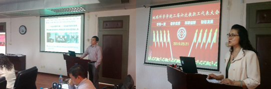 院長曾濺輝教授作學院工作報告校工會副主席孔繁青在大會發言
