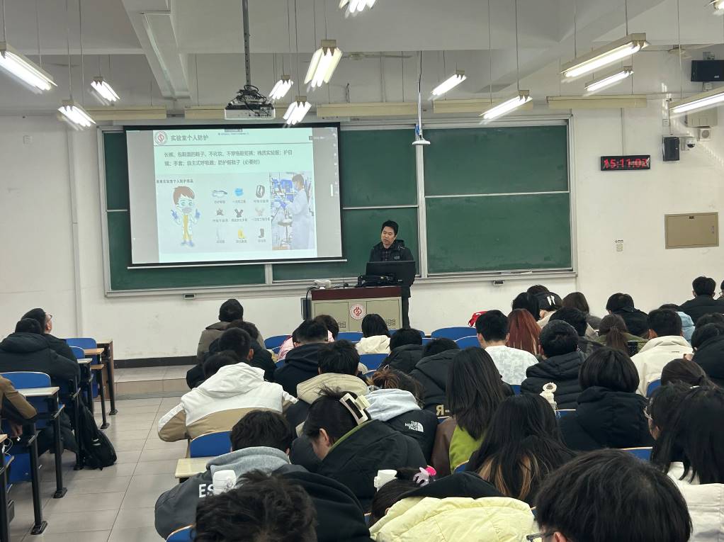 安全員師生寶從實驗室個人防護、用電安全、化學品安全、用氣安全、消防安全、實驗設備規范操作要求以及實驗室應急處置方法對學生進行了專項安全教育培訓,并對進入實驗室的學生提出了相應的要求和建議。