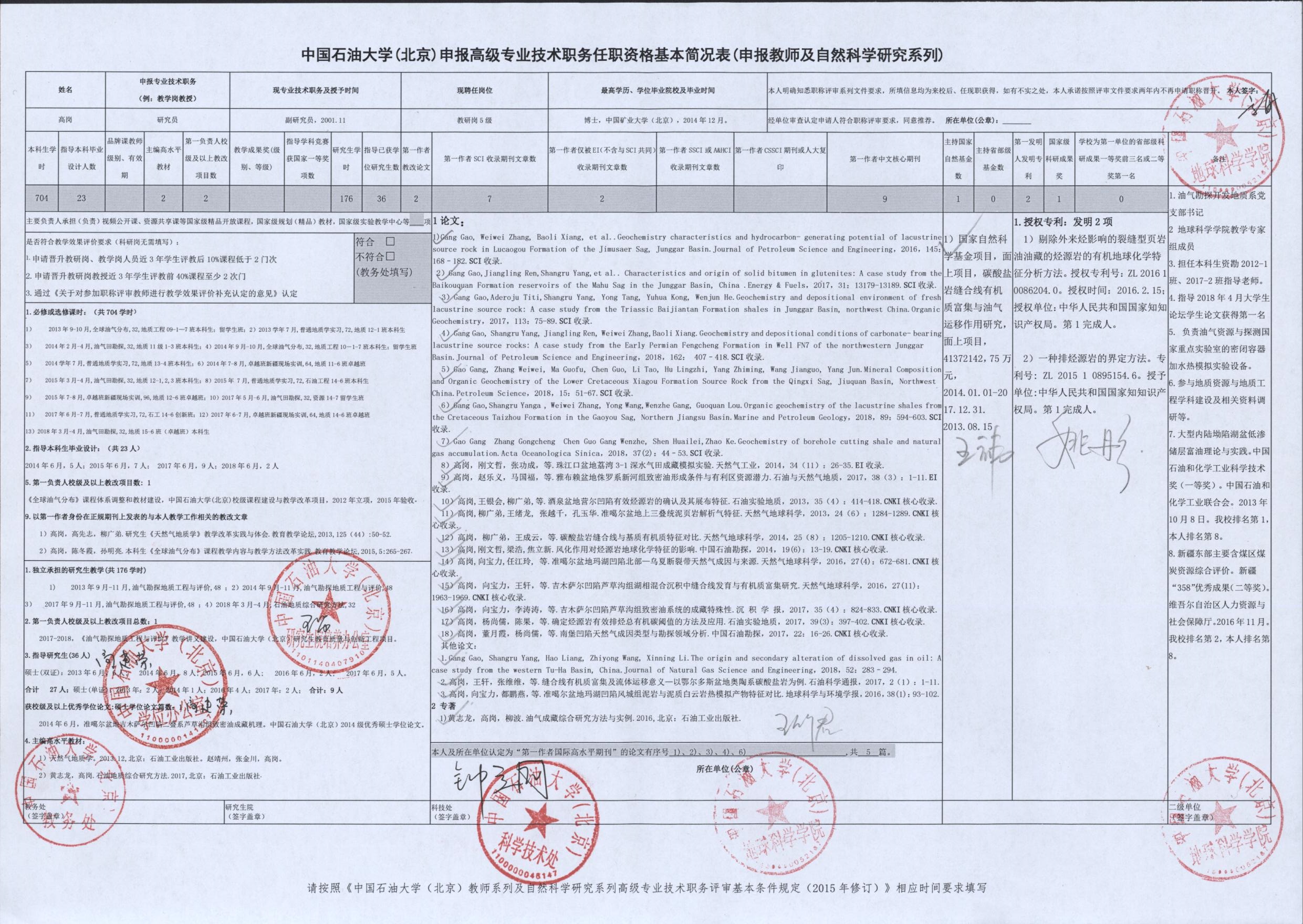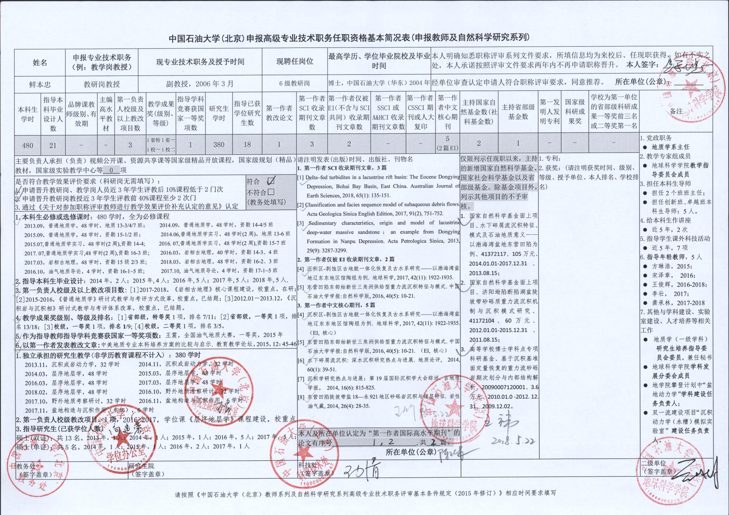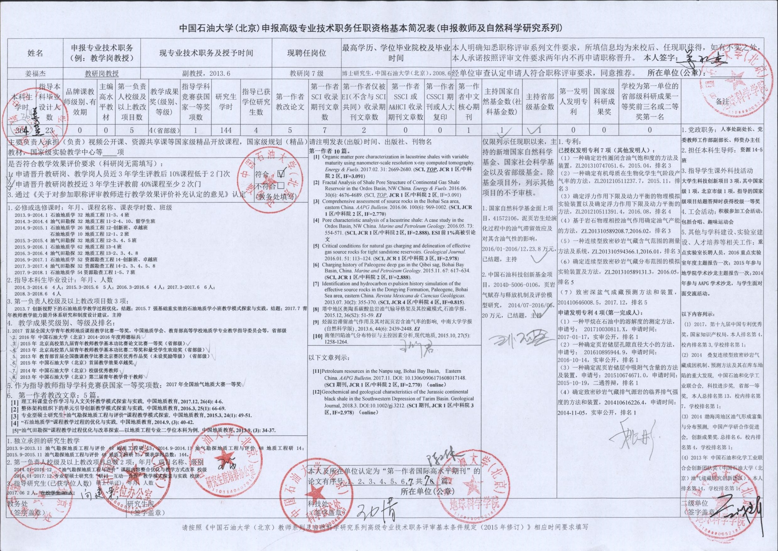2018年度中國石油大學(xué)(北京)申報(bào)高級專業(yè)技術(shù)職務(wù)各項(xiàng)指標(biāo)匯總表