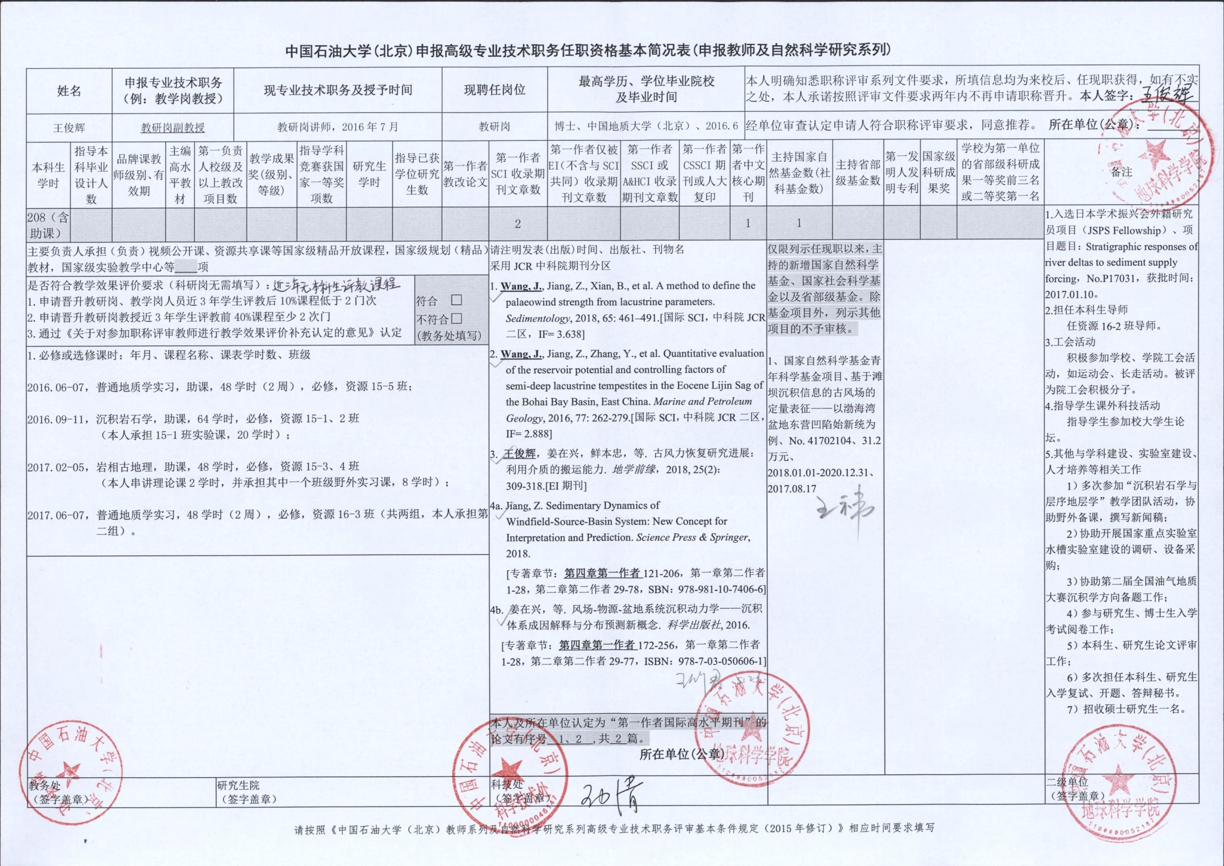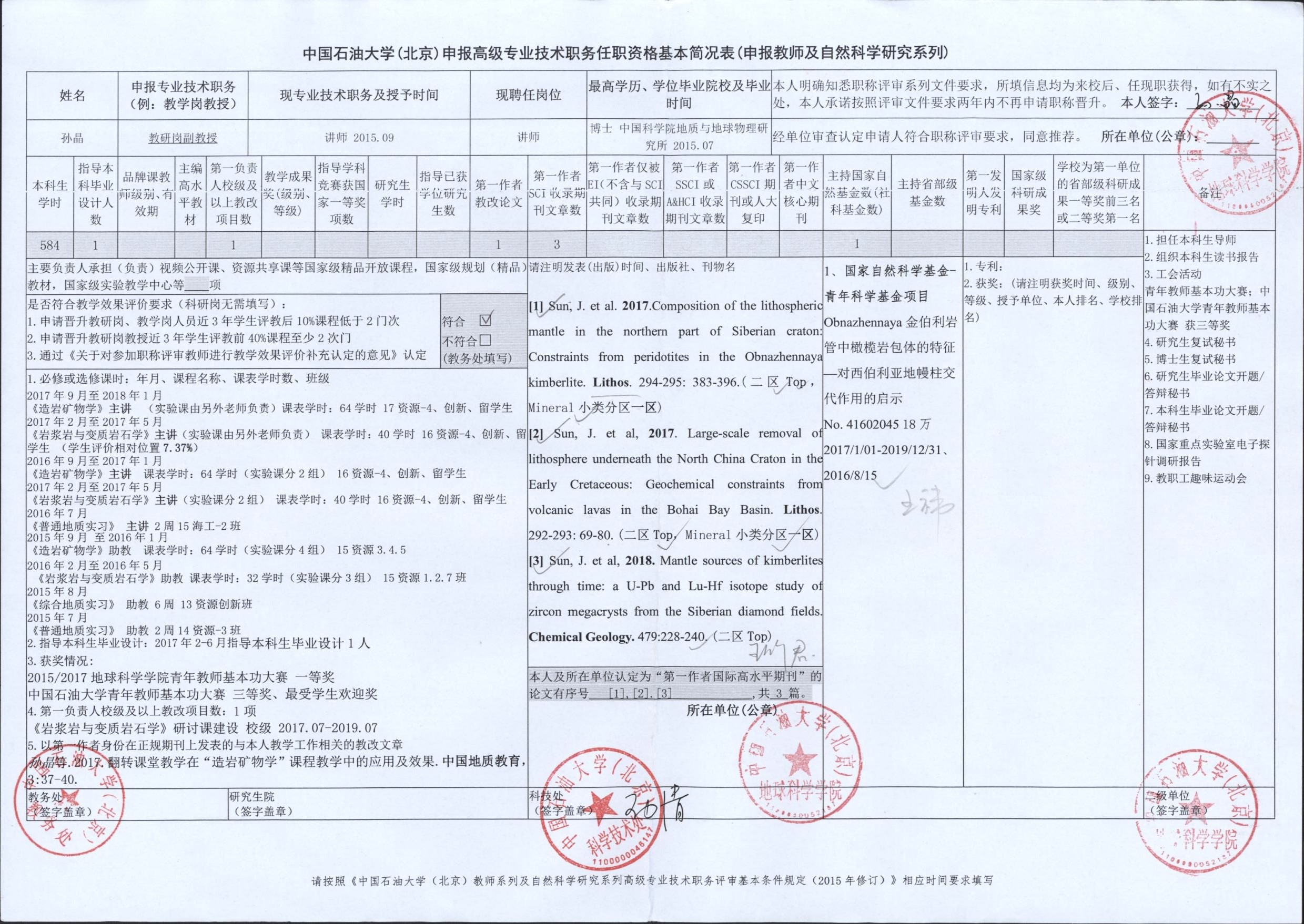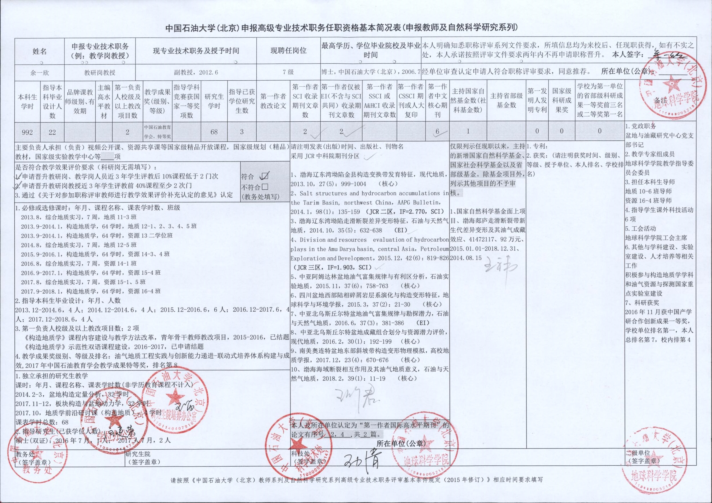2018年度中國石油大學(xué)(北京)申報(bào)高級專業(yè)技術(shù)職務(wù)各項(xiàng)指標(biāo)匯總表