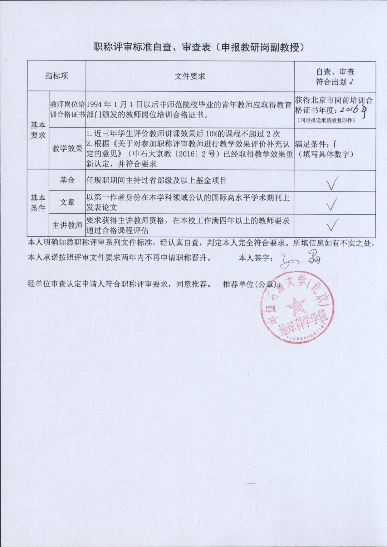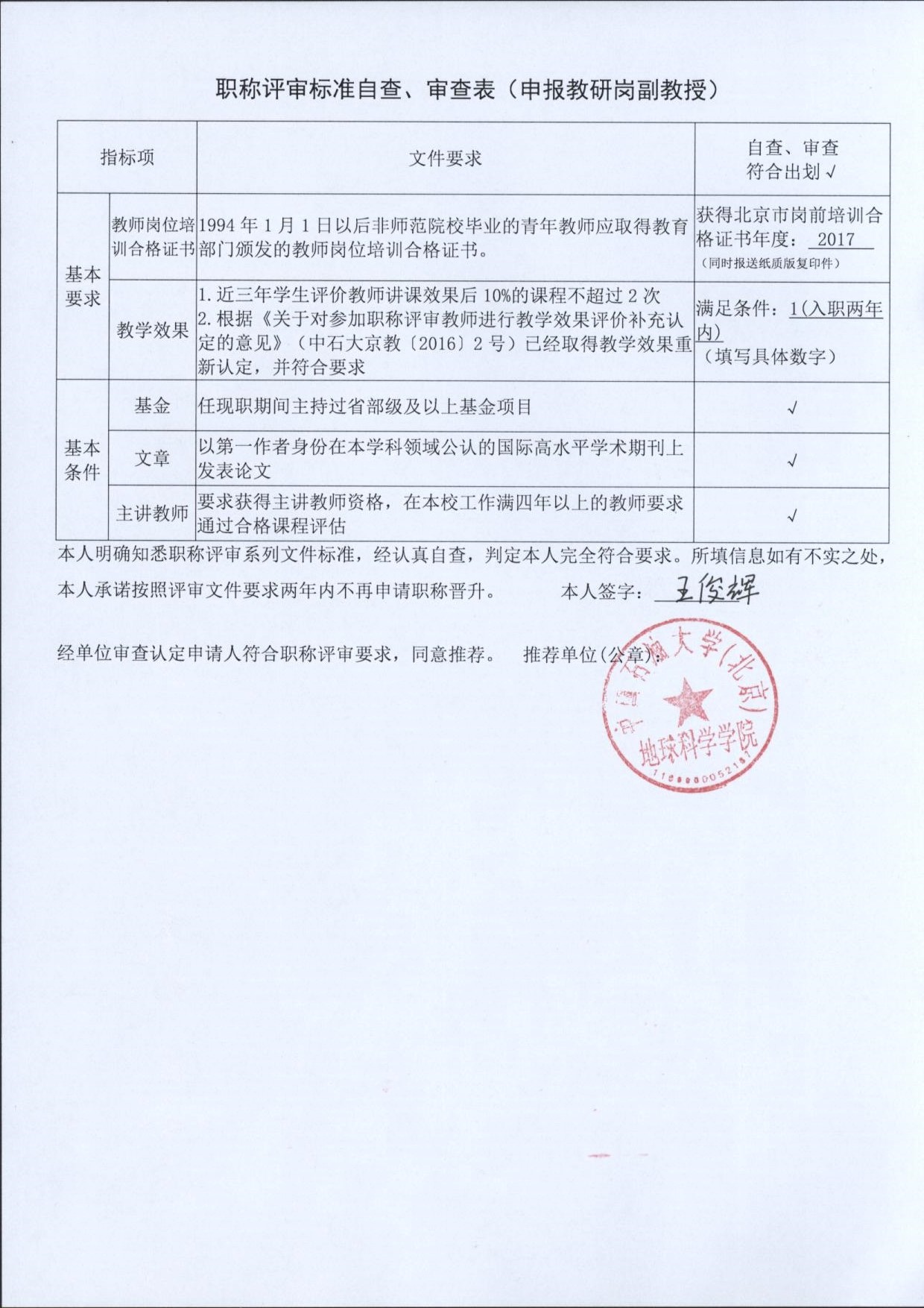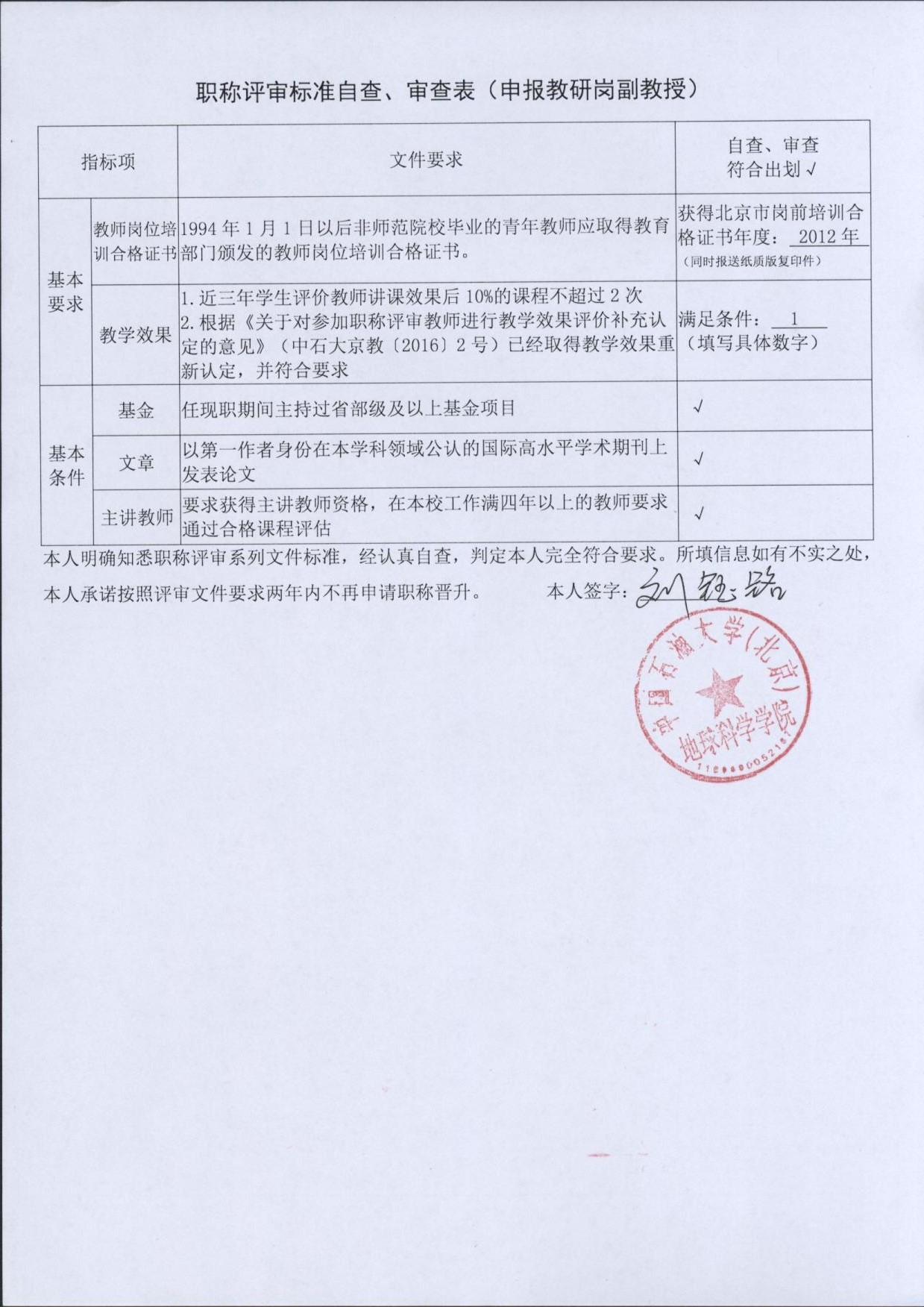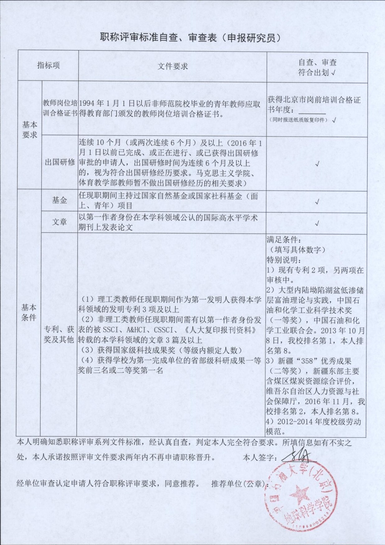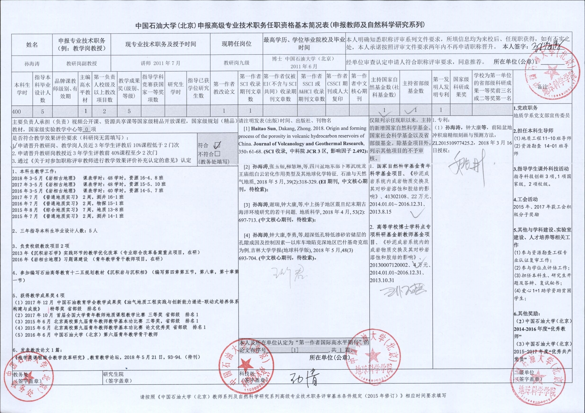 根據(jù)《中國石油大學(xué)(北京)關(guān)于2018年度專業(yè)技術(shù)職務(wù)評審工作的通知》的要求,學(xué)院現(xiàn)對我院申報(bào)高級專業(yè)技術(shù)職務(wù)人員材料進(jìn)行審查,并將申報(bào)人員“申報(bào)高級專業(yè)技術(shù)職務(wù)任職資格基本簡況表”、“職稱評審標(biāo)準(zhǔn)自查、審查表”進(jìn)行公示,公示期自2018年5月25日—5月31日,共計(jì)7天,有異議者請于公示期內(nèi)聯(lián)系地球科學(xué)學(xué)院院辦。
