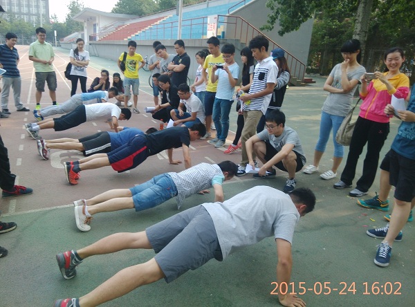 本次比賽分為三個(gè)環(huán)節(jié): 1.慢騎車(chē);2.爭(zhēng)分奪秒;3.對(duì)戰(zhàn)指壓板。其中“爭(zhēng)分奪秒”環(huán)節(jié)包括做俯臥撐、額頭吃餅干、吹氣球和吹乒乓球四個(gè)部分。在比賽中,各班所派出的代表團(tuán)隊(duì)團(tuán)結(jié)一致,斗智斗勇。最終研13-1班獲得一等獎(jiǎng),研14-3班(1隊(duì))獲得二等獎(jiǎng),研13-8班獲得三等獎(jiǎng),研14-3班(2隊(duì))獲得鼓勵(lì)獎(jiǎng)。