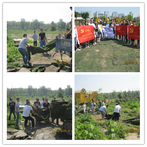 此次活動有黨支部黨員、預備黨員和積極分子、院研會成員等23人參加,大家于早上九點到達太陽村農場,在農場負責人的指導幫助下開展義務勞動。此次勞動主要內容是幫助清理堆積已久的草皮,并整齊地鋪在莊稼間的人行路上。大家聽完支部書記的安排,就立馬熱火朝天的干起來。頭頂35℃的烈日,也沒有阻擋大伙勞動的熱情。大家齊心協力把重達十幾斤的草皮運到三輪車上,再由三輪車運往莊稼間的人行路上。男生分成若干小組,分別將厚重的草皮抬上車,他們喊著“一二三,一二三”的口號,一個小時左右,便將所有的草皮運轉到目的地。隨后,女生也不甘示弱,一起將草皮一塊塊的平鋪在路上,不一會兒,坑坑洼洼的泥土地變成了綠油油整齊地“綠色”馬路。大家干的賣力,不一會兒就汗流浹背了。農場負責人看著大家出色的表現,臉上一直掛著滿意地笑容。大約上午十一點半,大家全部干完安排的農場的工作。在離開農場前,大家同農場負責人道別,負責人夸贊道:“中國石油大學的同學們都是好樣的,大家在義務勞動中身體力行,不只喊口號。體現了石油大學的黨支部勤奮、務實的優秀黨風,歡迎大家今后常來農場做客”。隨后,大家便乘坐公交車一起返回學校。結束了此次義務勞動之行。