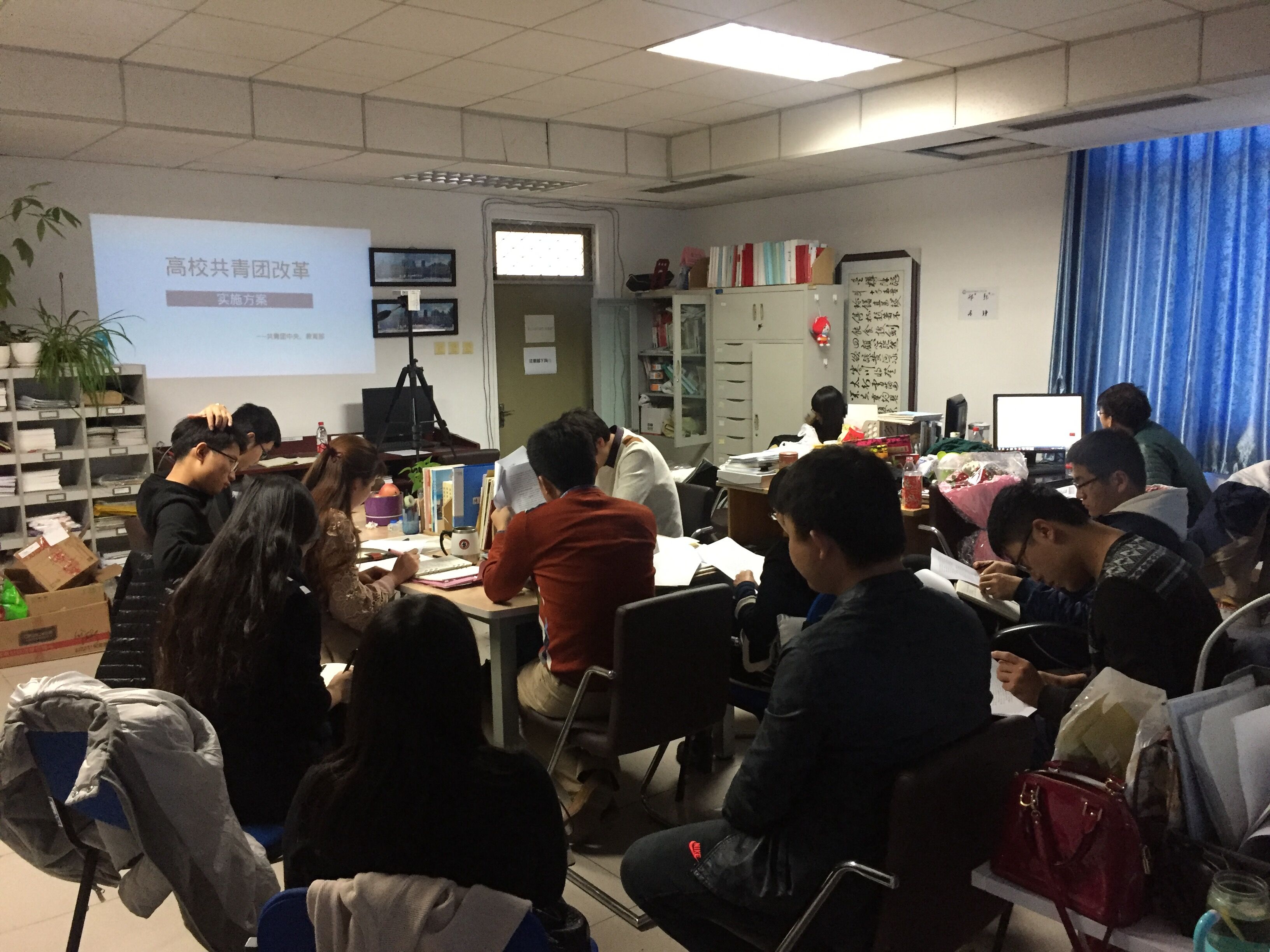 本次培訓會主要由三個環節組成,首先由地學院專職輔導員費崴崴帶領大家學習了《高校共青團改革方案》?!陡咝9睬鄨F改革方案》由共青團中央和教育部聯合下發實施,從指導思想、基本原則和主要目標三個方面提出了高校共青團改革的總體要求,從改革優化領導體制和運行機制、改革健全基層組織制度、改革創新工作方式方法、改革完善團干部選用培養制度、改革強化保障機制五個大方面制訂了改革的基本措施。周學智在學習中強調輔導員團隊必須牢牢把握共青團“凝聚青年、服務大局、當好橋梁、從嚴治團”的工作格局,始終把握思想政治引領這一核心任務,認真學習改革方案,提升輔導員隊伍的整體素質和工作業務水平,將改革方案落到實處。