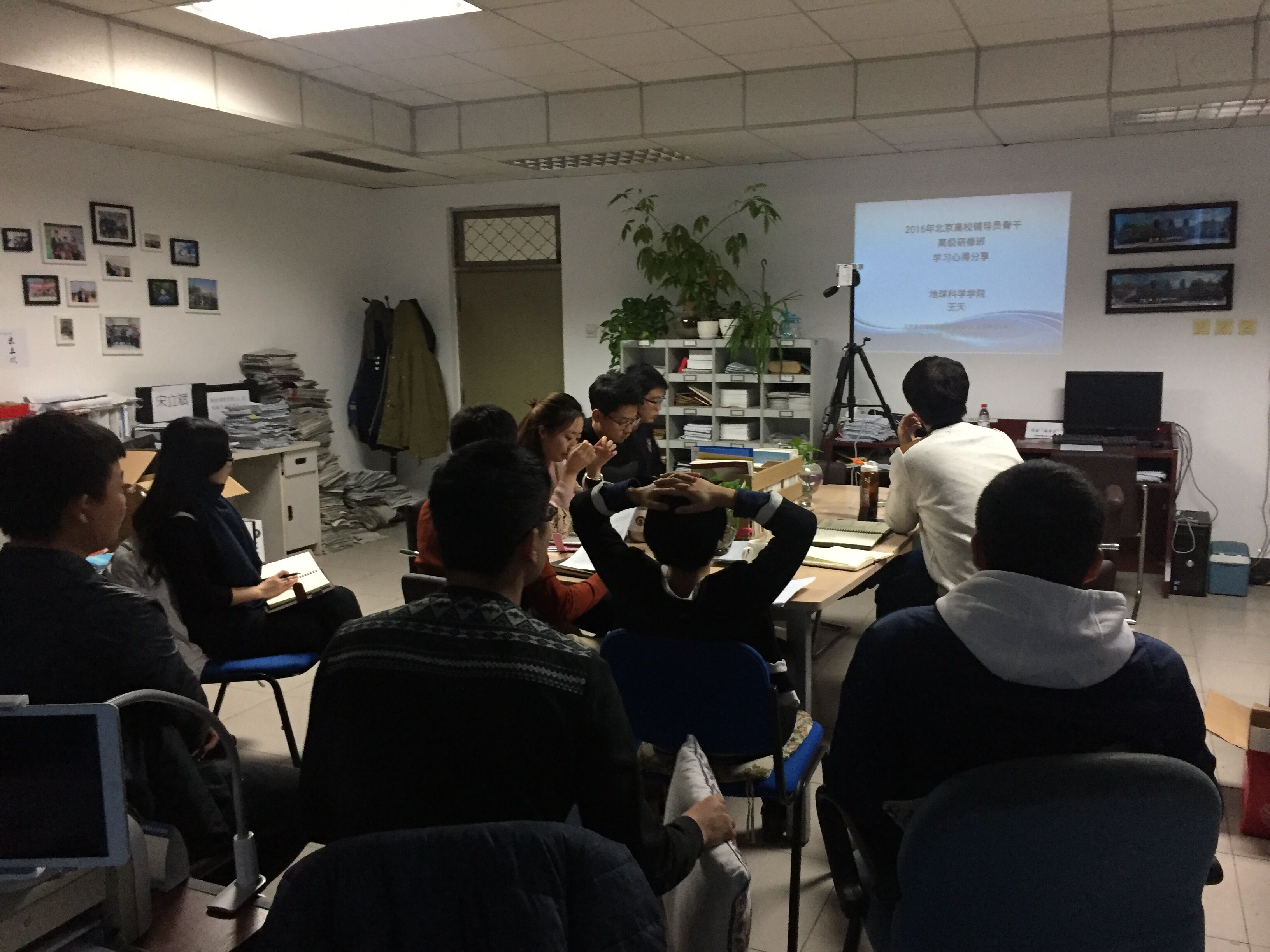 地學院專職輔導員王天結合參加北京高校輔導員骨干高級研修班的經歷,從輔導員隊伍建設、輔導員的自我提高、當前思政領域的熱點問題三個方面對參會輔導員進行了培訓和分享。在培訓中王天對我校輔導員隊伍建設情況和輔導員自我提高的途徑進行總結,對輔導員團隊工作中存在的不足進行反思并介紹了部分全國優秀輔導員代表事跡,鼓勵地學院輔導員積極向優秀模范學習,為地學院學生工作建設做出更大的貢獻。