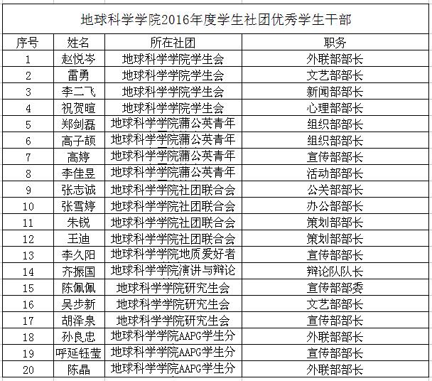 2016年,地球科學學院各學生社團,為豐富學生的生活、引領學生的思想,舉辦了豐富多彩的活動,取得了長足的進步和卓越的成果。在這一年里,在全國油氣地質大賽中、在黨支部建設中同樣涌現了一批先進個人及優秀組織。為表彰這些先進集體和個人過去一年里對學院發展建設做出的貢獻,地球科學學院于12月15日晚在地質樓11樓東報告廳舉行學院2016年度學生社團匯報暨黨建與學生工作表彰大會。地學院黨委書記王貴文、黨委副書記周學智、全體輔導員、各社團學生骨干、社團代表出席了表彰大會。