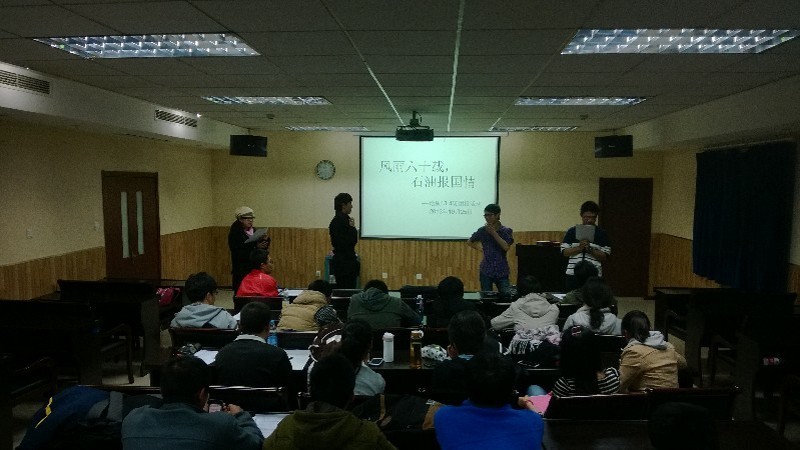 為深入學(xué)習(xí)宣傳貫徹黨的十八大精神,在全院學(xué)生黨員和學(xué)生團(tuán)員中深入開展群眾路線教育活動,充分發(fā)揮地球科學(xué)學(xué)院各級學(xué)生團(tuán)組織和廣大學(xué)生團(tuán)員的戰(zhàn)斗堡壘作用和先鋒模范作用,樹立學(xué)生團(tuán)員良好形象,地質(zhì)13-4班團(tuán)支部積極響應(yīng)我院團(tuán)委的號召,于2013年10月25日星期五開展“風(fēng)雨六十載,石油報(bào)國情”知識競賽主題活動活動過程中同學(xué)們積極主動搶答問題,集體思考,活動氛圍熱烈,學(xué)習(xí)氣氛濃烈。