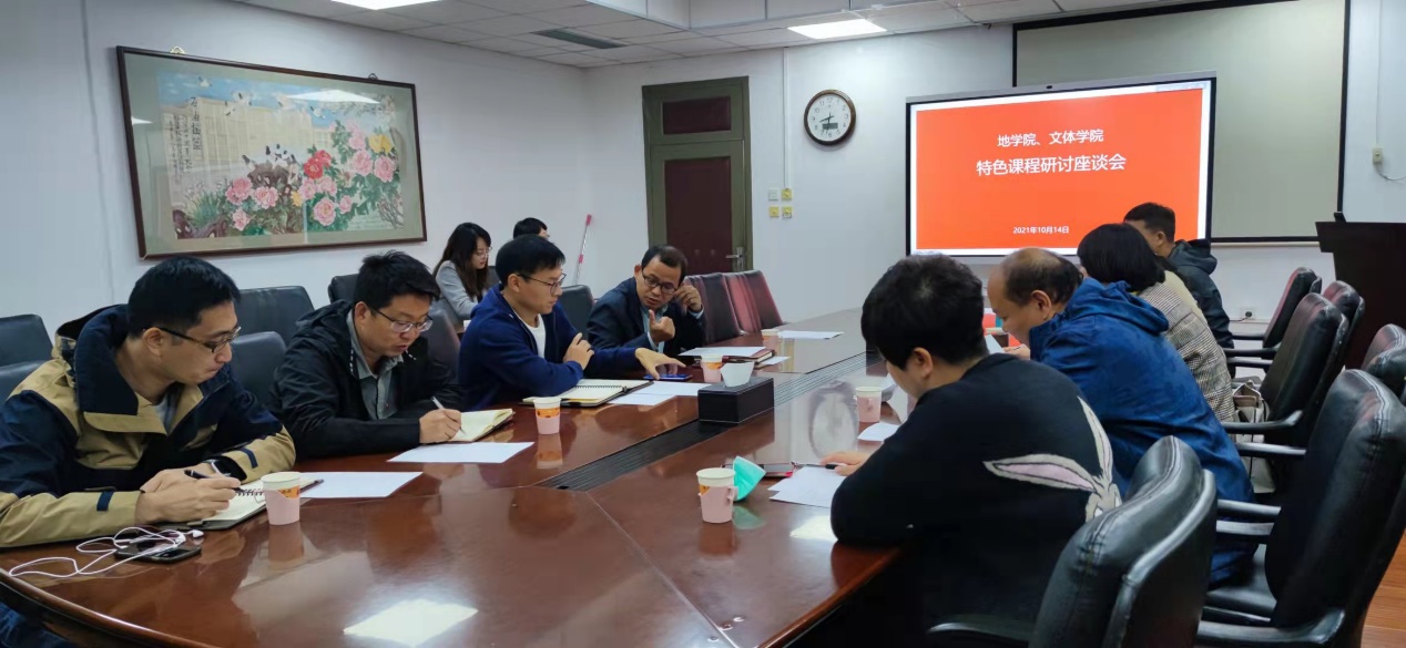 2021年10月14日上午8:30,地球科學學院和文體學院在地質樓1105會議室召開特色課程研討座談會,文體學院書記張珣、副院長張嬌、教研室主任劉曉婷、《地質素描》授課教師李玲和《地質攝影》授課教師趙興洪,以及地學院副院長余一欣、教師代表羅良、陳石、王俊輝參會。會議圍繞2021級藝術特色課程的開設條件、培養要求以及面臨的問題、未來發展方向等進行探討交流。