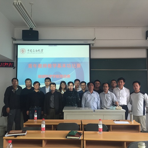中國石油大學(北京)青年教學基本功大賽地學院選拔賽2015年2015年9月28上午在中油大廈305教室舉行,由各教學系、研究中心組織推薦的8位青年教師參加了本次比賽。地球科學學院教學指導委員會成員、北京市教學名師、北京市青年教師基本功大賽獲獎人共11人組成的評委會,從比賽選題、教學設計、課件制作、授課演示、板書繪圖等方面現場對各位選手進行了精彩點評,指出了存在的主要問題與不足,并最終以投票表決的方式,評選出一等獎2名,二等獎3名。一等獎獲得者地質學系的孫晶老師和油氣勘探與勘探地質系的劉鈺銘老師將代表地球科學學院參加由校工會組織的“泓達杯”青年教師基本功大賽決賽。