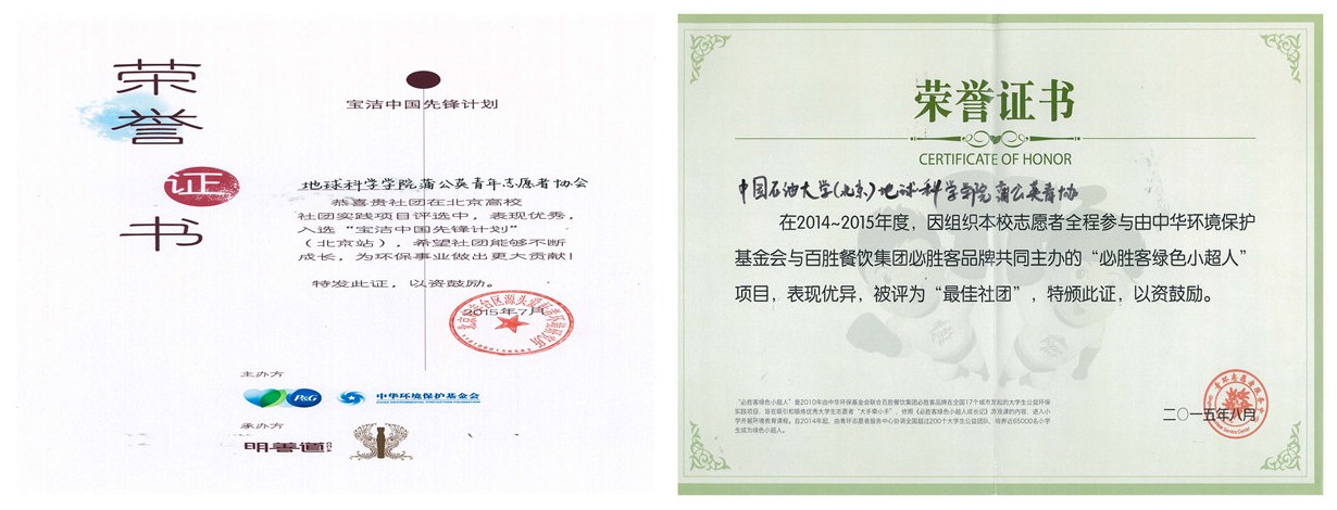 金秋10月,地學院蒲公英青年志愿者協會兩項志愿活動榮獲獎項,其中“樂水行——我和河流有個約定”成功入選“寶潔中國先鋒計劃”;“必勝客綠色小超人環保支教活動”蒲公英青協支教團隊獲得 “最佳社團”稱號。