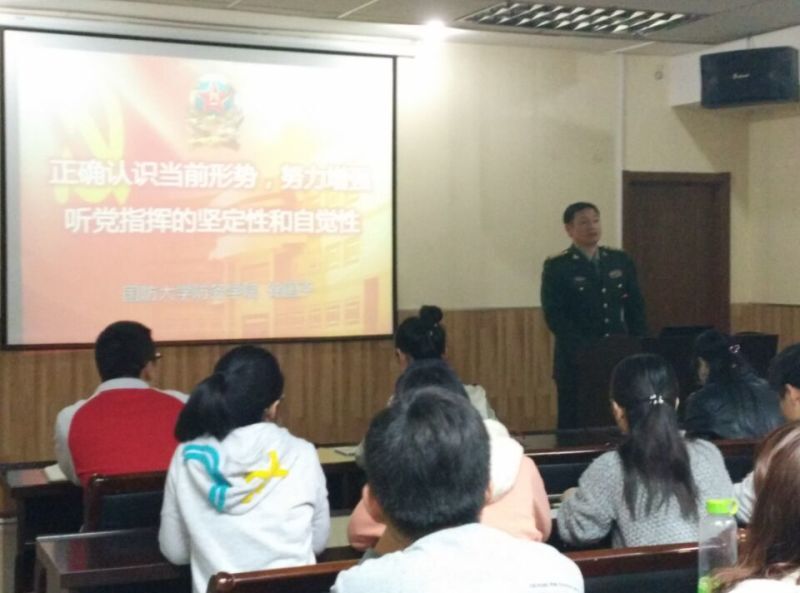 課上,徐國(guó)平教授全面地為我們分析了當(dāng)前國(guó)家總體發(fā)展形勢(shì),并帶我們認(rèn)識(shí)了當(dāng)前我國(guó)面臨的國(guó)家安全威脅。他提出,當(dāng)前我國(guó)各項(xiàng)事業(yè)健康發(fā)展,總體形勢(shì)是好的;而黨和政府的高度重視,有效地解決了前進(jìn)中存在的各種問(wèn)題;雖然國(guó)際形勢(shì)還存在著種種不穩(wěn)定的因素,各種敵視中國(guó)的言論頻出,但是我們有條件,有信心保持社會(huì)和諧穩(wěn)定,努力把我國(guó)建設(shè)成為一流的世界強(qiáng)國(guó)。結(jié)束之余,陳冬霞書記呼吁我們把精力聚焦到學(xué)習(xí)上來(lái),珍惜自己來(lái)之不易的良好環(huán)境。