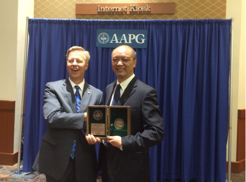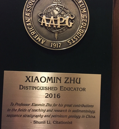 在加拿大卡爾加里2016年6月19日舉行的AAPG年會開幕式和頒獎儀式上,AAPG在全球范圍內共評選出2016年度1位最高獎-Sidney獎(美國Paul Potter教授)、1位Halbouty杰出領導者獎(美國Scott Tinker)、評選出2位Murray杰出教育家獎(Grover E. Murray Memorial Distinguished Educator award)(美國和中國各1位)等獎項。中國石油大學(北京)地球科學學院朱筱敏教授因在沉積地質學、層序地層學以及石油地質學領域教學科研中取得的成績獲得了該國際獎。AAPG主席JohnR.Hogg親自頒獎并合影留念。Murray(前AAPG主席、美國德州理工大學校長)杰出教育家獎設立于1993年,每年在全球與地質、石油地質相關的高校評選地質教授1-4人。朱筱敏是亞太地區第一位獲得該獎的地質教授,為擴大中國石油大學(北京)的國際影響、推進國際交流起到了積極作用。