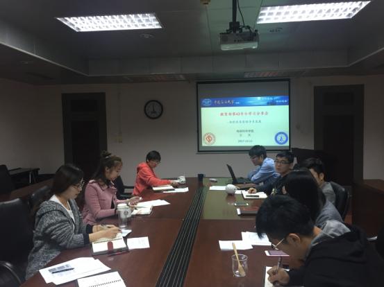 2017年10月11日下午,地球科學學院輔導員業務培訓會在地質樓1105舉行,我院黨委副書記周學智及團委書記費葳葳帶領全體輔導員集體學習了中華人民共和國教育部令第43號(即《普通高等學校輔導員隊伍建設規定》)的主要思想和具體內容。專職輔導員王天老師任會議主講。
