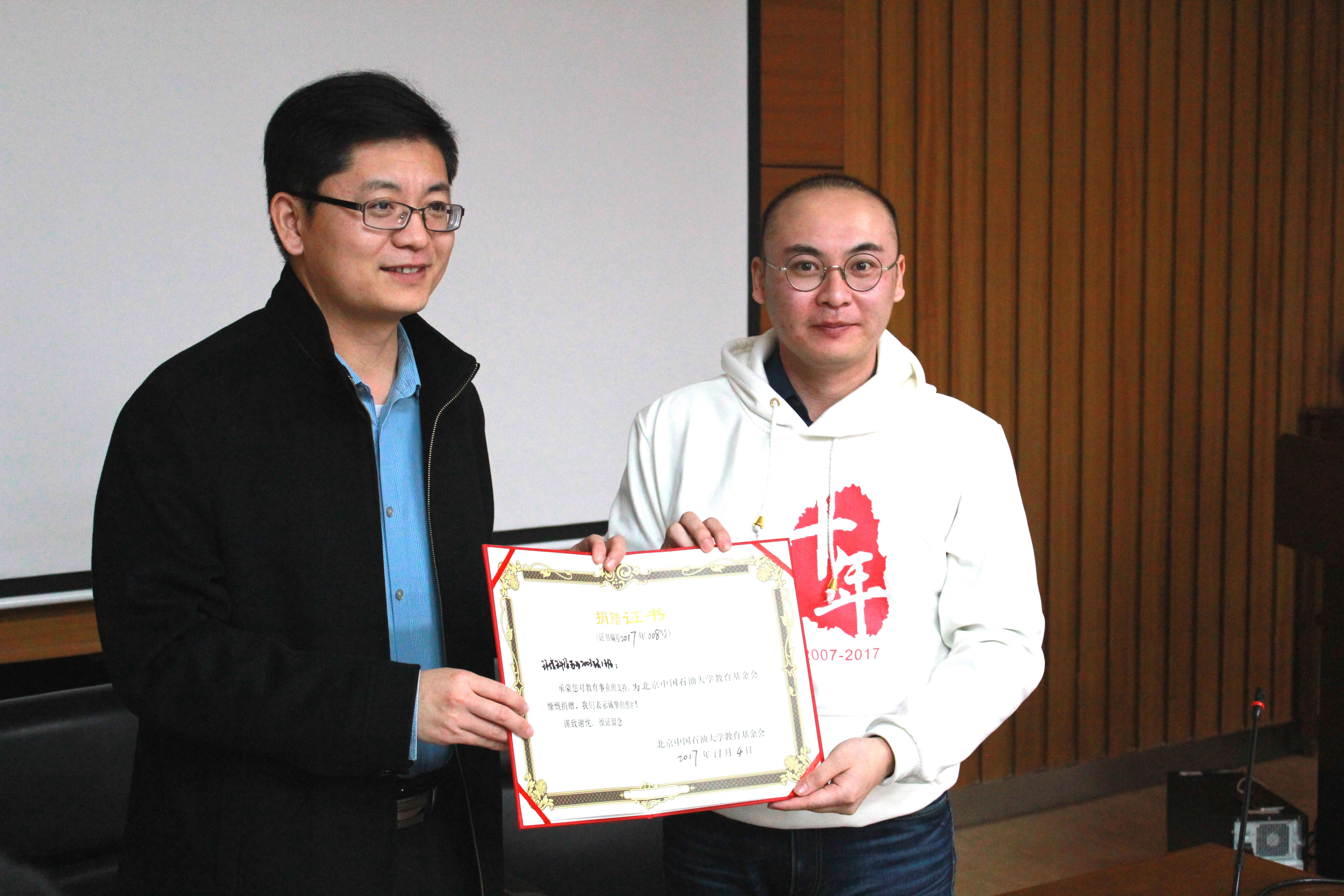 2017年11月4日,石大地球科學學院環境科學2003級1班畢業生回訪母校,五湖四海的同學歡聚一堂,一同慶祝畢業十周年。歲月如歌,憶四年同窗往事;前程錦繡,看地院桃李芬芳。全體校友在地質樓204舉行了座談會。校長辦公室彭斐主任,校友辦公室曹紅艷老師和基金會程東梅老師參加了座談會。