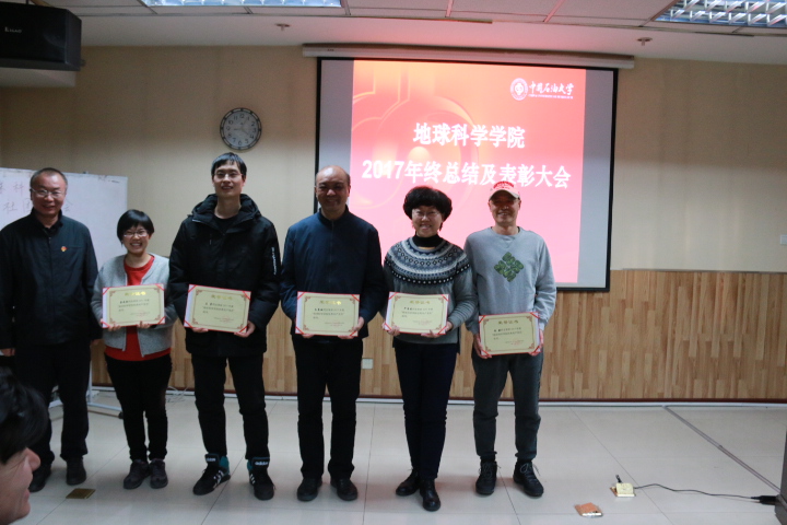 會上,院黨委書記王貴文宣讀了《關于表彰地球科學學院2017年度先進集體和先進個人的決定》和《關于表彰地球科學學院2017年度工會先進集體和先進個人的決定》,對獲獎的2017年度先進集體和個人進行了頒獎。對2017年盆地與油藏研究中心黨支部榮獲“北京市先進基層黨組織”稱號表示祝賀。