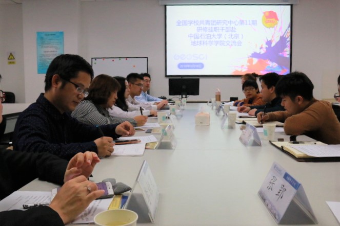 3月17日,來自東北大學、濟南大學、東莞南城中學等學校的全國學校共青團研究中心第11期研修掛職干部到我院進行共青團工作交流。中國石油大學(北京)團委書記周玉成、地球科學學院黨委副書記周學智、地球科學學院團委書記費葳葳以及地學院相關團學工作干部參加了在地質樓823的交流會。