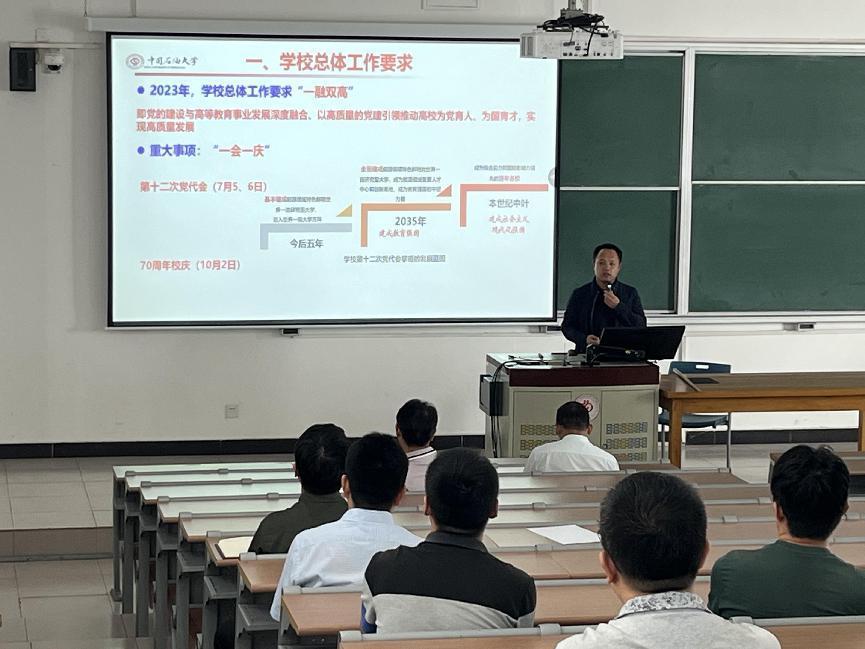 隨后,黨委書記姜福杰介紹了學院黨建工作取得的進展,并結合當前油氣行業發展背景與趨勢,對科研工作方面發現的重難點問題,提出規劃和展望。