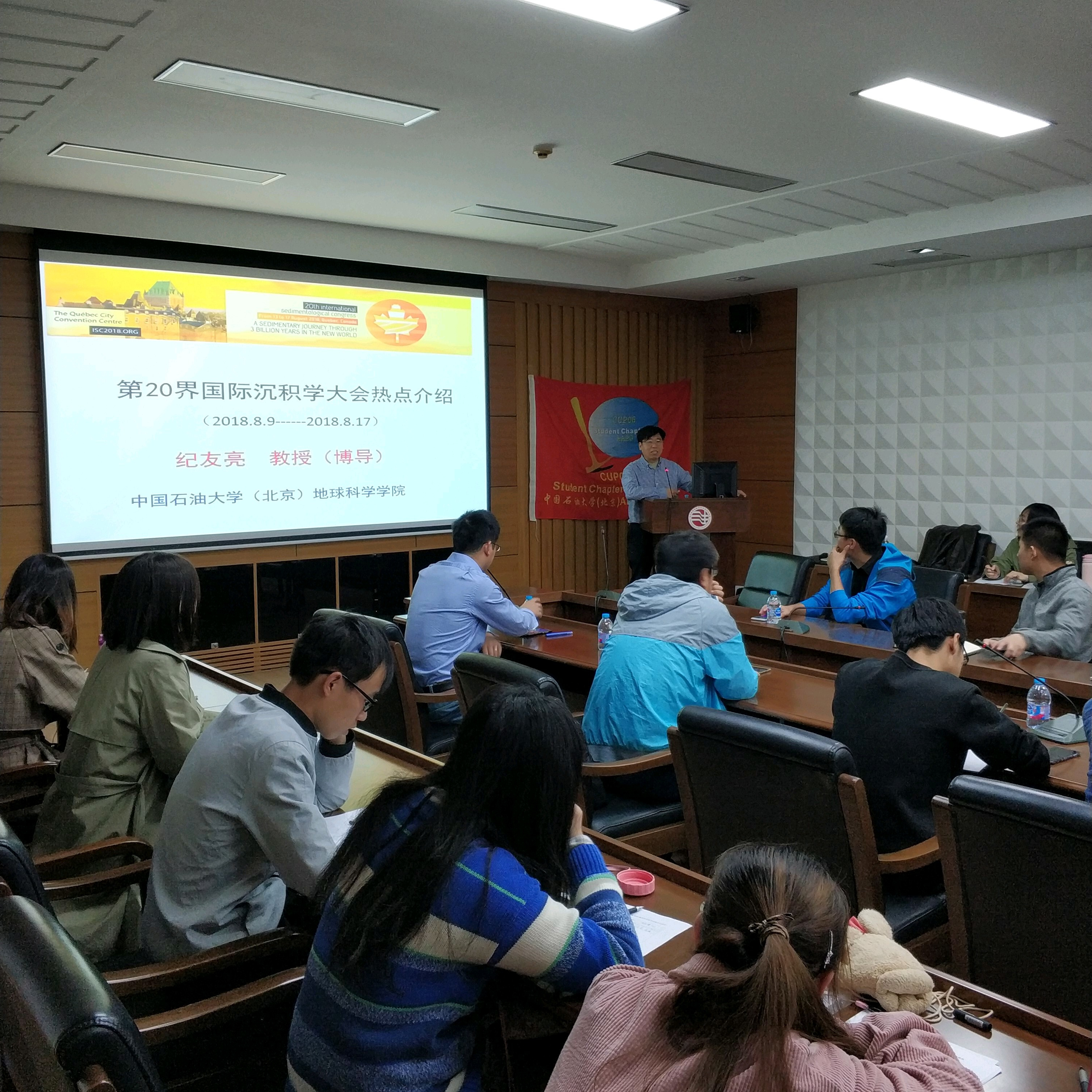 2018年10月18日,地球科學學院油氣勘探與開發地質系與中國石油大學(北京)AAPG學生分會在地質樓204聯合舉辦了油氣勘探與開發地質系第二十二期學術沙龍。本期學術沙龍以“第20屆國際沉積學大會熱點介紹”為主題,由中國石油大學(北京)地球科學學院紀友亮教授主講,60余名師生共同參加了此次活動。