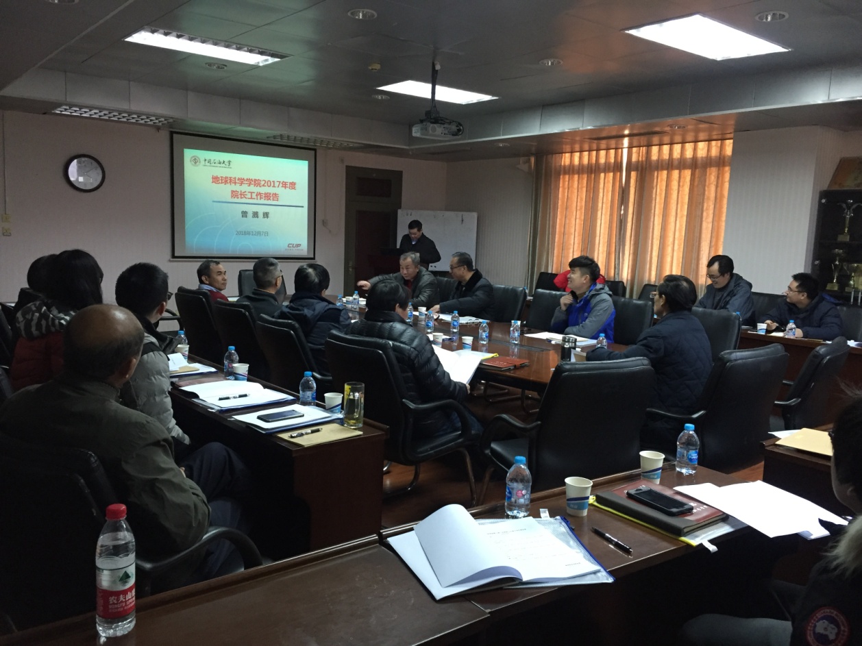 會上,地球科學(xué)學(xué)院院長曾濺輝教授作了2017年度學(xué)院工作總結(jié),系統(tǒng)總結(jié)和歸納了2017年學(xué)院在學(xué)科建設(shè)、隊伍建設(shè)、教學(xué)質(zhì)量、科學(xué)研究、黨團工作等方面的主要進展,同時也指出了學(xué)院發(fā)展中面臨著的主要問題與不足。接著院工會主席余一欣副教授作了2017年工會工作和財務(wù)情況報告,院辦主任王宣赫作了2017年度學(xué)院財務(wù)工作總結(jié)報告,黨委書記王貴文教授作了地球科學(xué)學(xué)院工會換屆選舉說明,曾濺輝院長通報了學(xué)術(shù)不端行為處理結(jié)果。