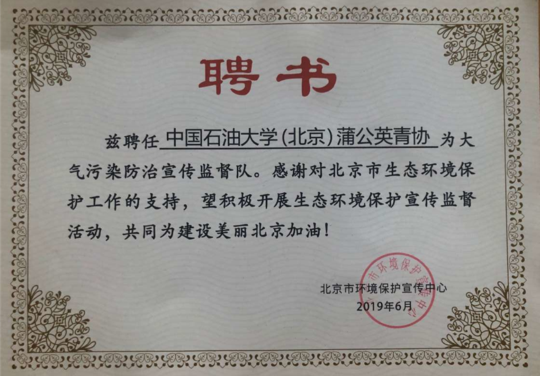 6月5日世界環境日上午,在北京生態環境教育基地——北京動物園,綠色啄木鳥環保公益組織和蒲公英青協等高校環保社團共20支隊伍被聘任為大氣污染防治宣傳監督隊,專門從事環保科普。蒲公英青協將立足學校、走進社區,開展大氣污染防治政策和措施、綠色生活等領域的宣講,并發揮監督作用,發現環境污染問題及時向有關部門反映,幫助解決環保相關問題。