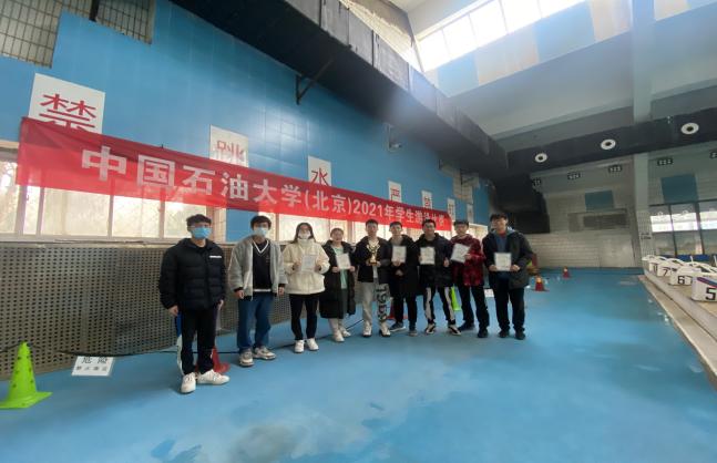 2021年12月11日,中國石油大學(北京)2021年學生游泳比賽在游泳館舉行,我院9名同學參加本次比賽11個項目。在此次比賽中我院運動員們發揚了頑強拼搏的品格,本著“友誼第一,比賽第二”的精神奮力拼搏,在八項競賽中取得優異成績,團體總分位列全校第三名。