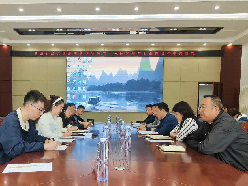 4月19日上午,地學院赴明十三陵管理中心開展交流座談會并舉行了共建簽約暨揭牌儀式。中國石油大學(北京)地球科學學院黨委副書記王茹與明十三陵管理中心黨組成員副主任袁江玉出席了揭牌儀式,中國石油大學(北京)地球科學學院團委書記姚夢竹、專職輔導員劉俊鑫,兼職輔導員王思聰、孟笑、明十三陵管理中心文物科、遺產中心、對外交流專班和定陵博物館等相關部門人員及學生代表參加此次會議。