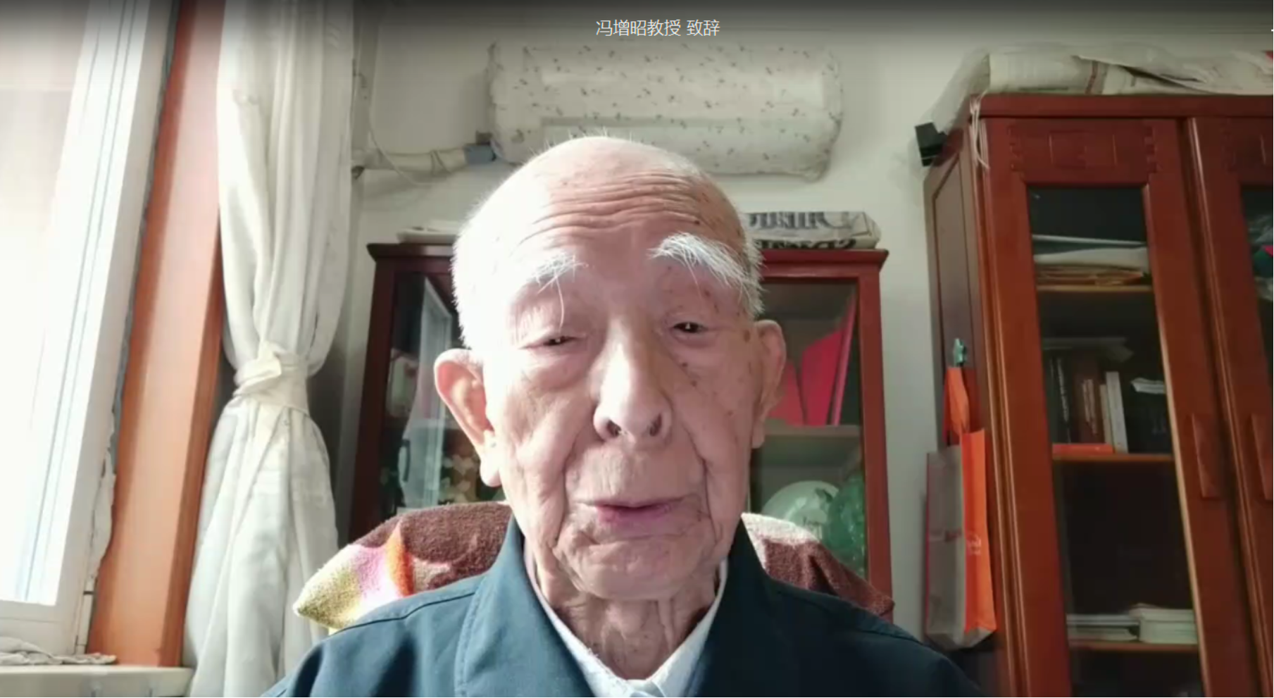 圖2 96歲高齡的馮增昭教授代表大會學術委員會在開幕式中致辭