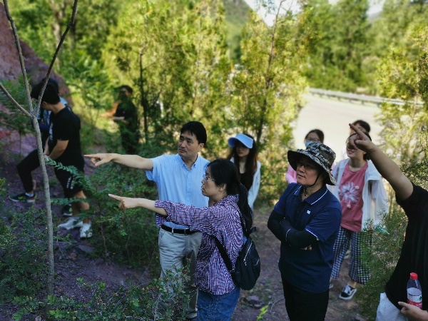 參觀結束后,師生們乘車赴南雁路田莊村附近開展野外油氣地質教學實踐活動,幾位老師帶學生們觀察剖面,深入講解相關的構造、沉積知識,分析探討露頭的巖性、巖相和斷層等。雖然天氣十分炎熱,但同學們依然學習熱情高漲,積極討論并和老師交流學習。