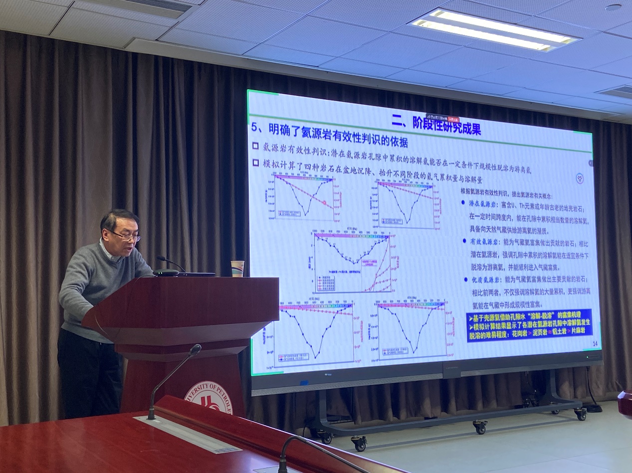 本次年度會(huì)議主要分為工作進(jìn)展匯報(bào)和專家評(píng)議兩個(gè)階段進(jìn)行。項(xiàng)目負(fù)責(zé)人陳踐發(fā)教授匯報(bào)項(xiàng)目年度整體進(jìn)展與下步工作計(jì)劃。中國(guó)石油大學(xué)(北京)劉成林教授、北京大學(xué)賴勇教授、中國(guó)地質(zhì)調(diào)查局西安地質(zhì)調(diào)查中心李玉宏研究員、中國(guó)石油集團(tuán)科學(xué)技術(shù)研究院李劍教授分別匯報(bào)了各自課題的研究進(jìn)展和標(biāo)志性創(chuàng)新成果及2025年工作安排。專家組在聽取了項(xiàng)目和四個(gè)課題的進(jìn)展報(bào)告后一致認(rèn)為,經(jīng)過一年工作,項(xiàng)目和各課題完成了預(yù)期的研究任務(wù),并針對(duì)項(xiàng)目面臨的技術(shù)困難和具體實(shí)施工作中存在的問題,提出了進(jìn)一步研發(fā)氦氣分析測(cè)試技術(shù),深入研究氦源、運(yùn)移、富集與保存機(jī)制,加強(qiáng)項(xiàng)目?jī)?nèi)部交流等建議,使項(xiàng)目2025年的工作內(nèi)容與研究任務(wù)更加明確聚焦。
