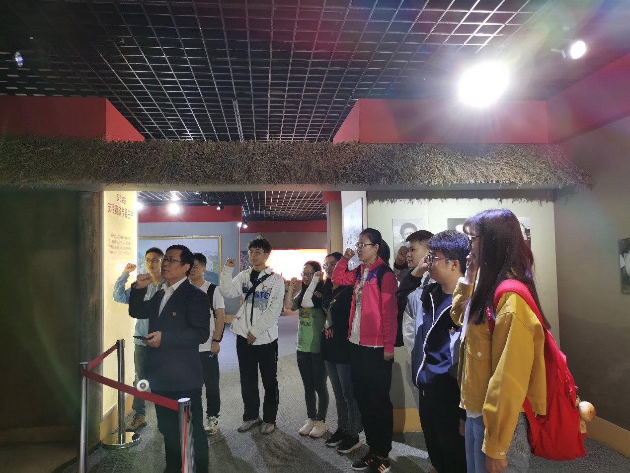 北京市延慶區(qū)大莊科鄉(xiāng)沙塘溝村,這里是抗戰(zhàn)時期平北地區(qū)第一個農(nóng)村黨支部的誕生地,被譽為“平北紅色第一村”。“第一村”的紀念館中共包含了七個單元,分別是:“平北抗戰(zhàn)開辟”、“英勇抗擊”、“僵持歲月”、“支援抗戰(zhàn)發(fā)展生產(chǎn)”、 “壯大組織”、“走向勝利”、“革命遺址”。師生們在講解員的帶領(lǐng)下學習平北農(nóng)村黨支部建立的歷史,了解從沙塘溝走出來的八路軍戰(zhàn)士背后的故事。一張張革命先烈的照片,一件件那個年代的作戰(zhàn)工具、生活用品,午無一不在告訴大家幾十年前這里曾經(jīng)抗戰(zhàn)的血雨腥風。師生們在高崗?fù)镜膸ьI(lǐng)下,懷著崇敬與激動的心情在紀念館中“第一個黨支部成立現(xiàn)場” 的塑像前重溫入黨誓詞。