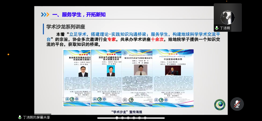 各社團代表分別從社團建設情況、日常工作開展情況以及社團工作成效等方面,對2021-2022學年的學生社團工作進行總結,同時介紹了社團未來一年的工作計劃。經評選,熱點工作室獲一等獎,蒲公英青年志愿者協會、學生會獲二等獎,研究生會、地球科學青年匯、AAPG學生分會獲三等獎。