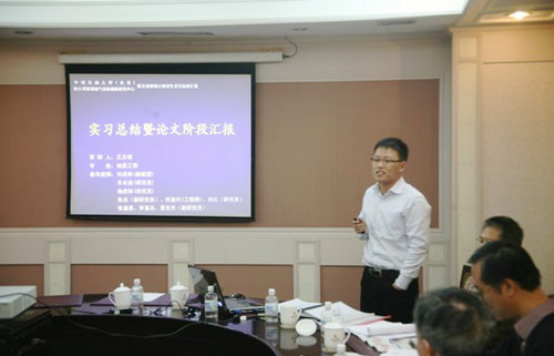 2011年11月29日下午,中國石油大學與國土資源部油氣資源戰略研究中心(以下簡稱油氣中心)共建的第62個實習工作站的3名專業學位碩士生企業實習答辯在油氣中心舉行。油氣中心副主任車長波、地球科學學院院長柳廣弟、油氣中心戰略室主任楊虎林、學生導師劉成林以及6名現場專家一并出席。