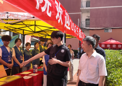 隨后校長一行來到學院迎新棚了解學院新生報到情況,學院本科新生輔導員李普一向校長詳細介紹了迎新情況、先導教育及其他特色工作。在今年的迎新過程中,學院以“知-信-行”為主線構建全過程育人體系:知校環節以“知新生、知家庭”為抓手;愛校環節圍繞“信學校、信學院、信專業”;行校環節聚焦知行合一。