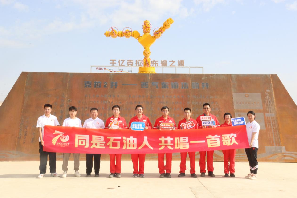 社會實踐團成員與校友們一起,在西氣東輸的起點、戈壁荒漠的中心、油田一線的現場再次將校歌唱響,為母校70周歲生日送上最真切的祝福!