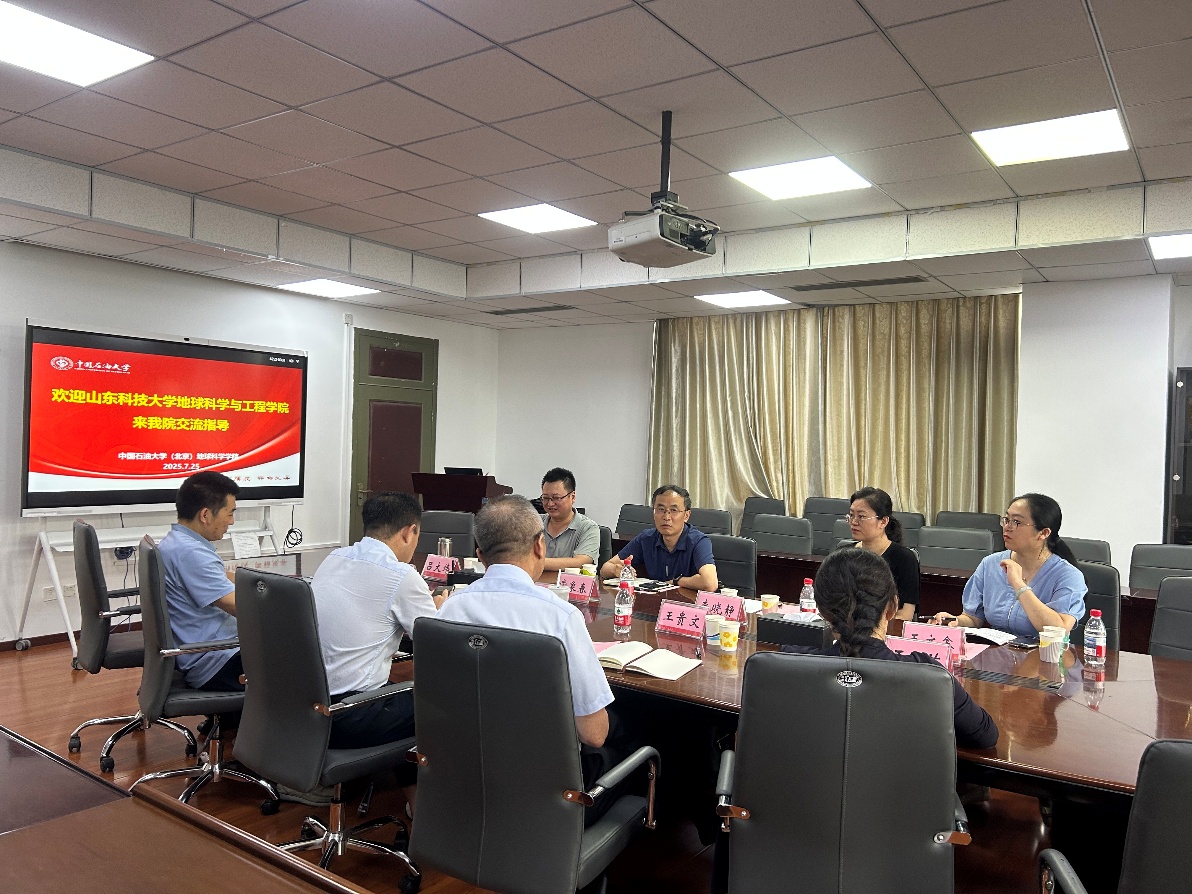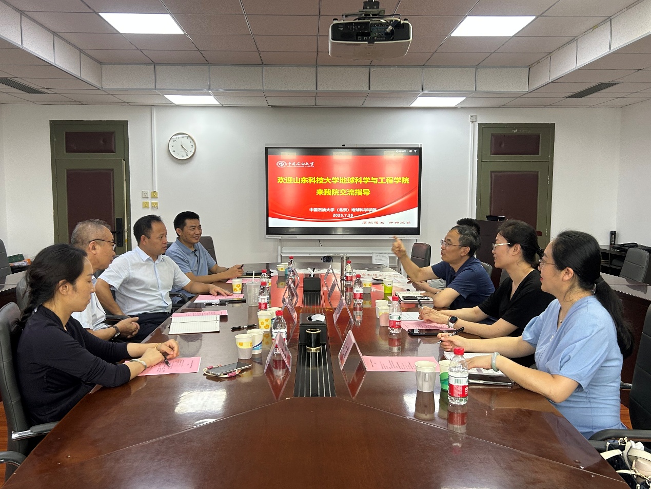 2025年7月25日下午,山東科技大學地球科學與工程學院院長常象春一行來我院走訪交流。學院黨委書記姜福杰、院長王貴文等接待了常象春一行。