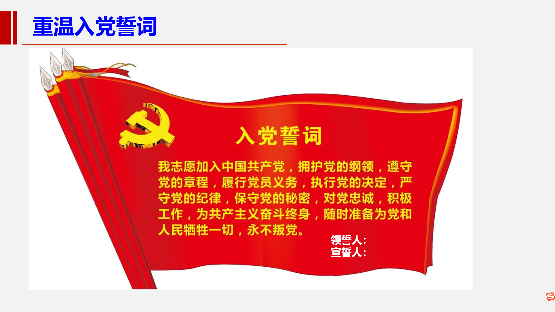第二階段為“黨員組織生活”。支部黨員集體為7月份、9月份入黨的楊明慧、王洪玉、邱楠生、師生寶、張劍鋒共五位同志過政治生日,強調了“及時交納黨費”的重要性,最后集體重溫了入黨誓詞。