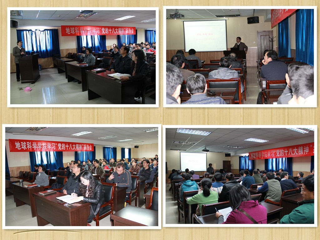 12月17日,我院在地質樓東報告廳開展了學習“黨的十八大精神”報告會,馬克思主義學院曹培強老師應邀為此次報告主講人。全體教職工參與會議,會議由地球科學學院黨委書記劉洛夫主持。