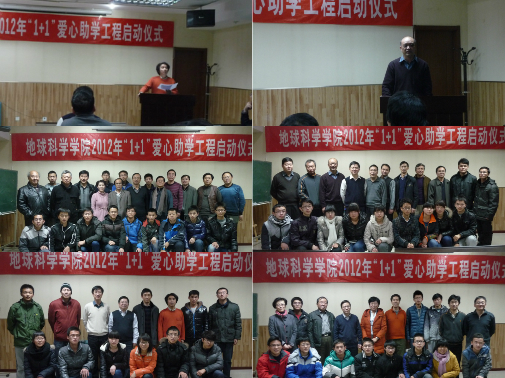 2012年12月21日下午,中國石油大學(北京)地球科學學院2012年“1+1”愛心助學工程啟動儀式暨師生見面會在地質樓11層東報告廳舉行。地球科學學院院領導、各系負責人、資助學生教師、受資助學生參加了大會,啟動儀式由地學院黨委書記劉洛夫教授主持。