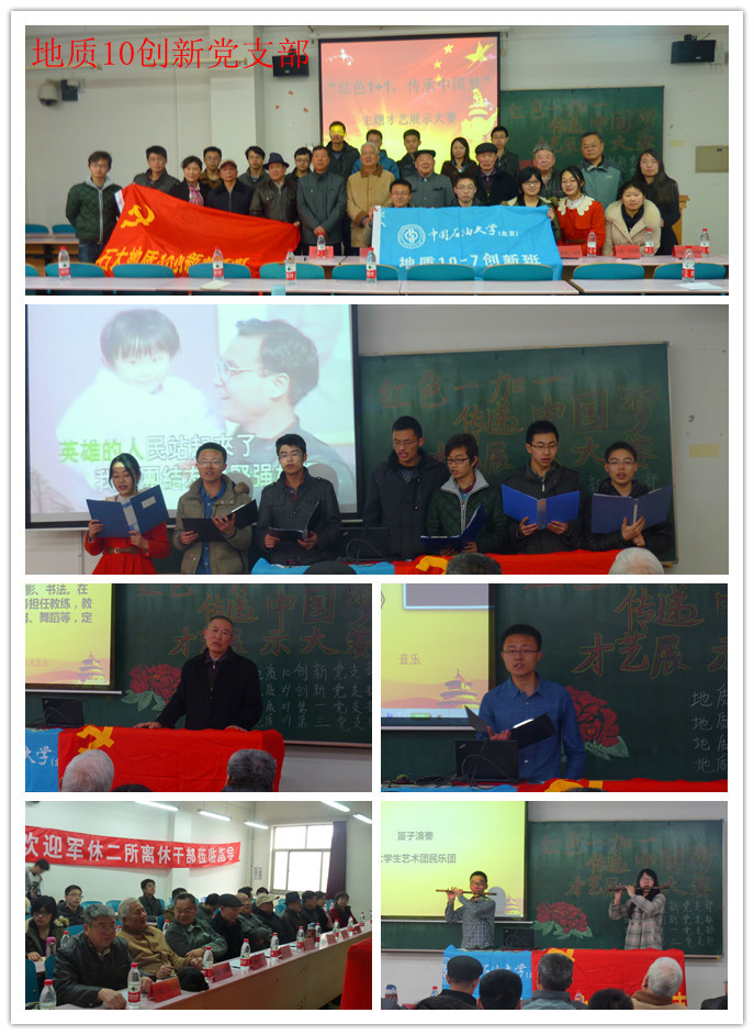3月29日下午,應地質(zhì)10創(chuàng)新黨支部、地質(zhì)10-7團支部的邀請,昌平軍休二所黨支部部分老黨員、老干部,到我校參加“紅色1+1”共建聯(lián)歡會。地質(zhì)09部分支部黨員也應邀參加活動。