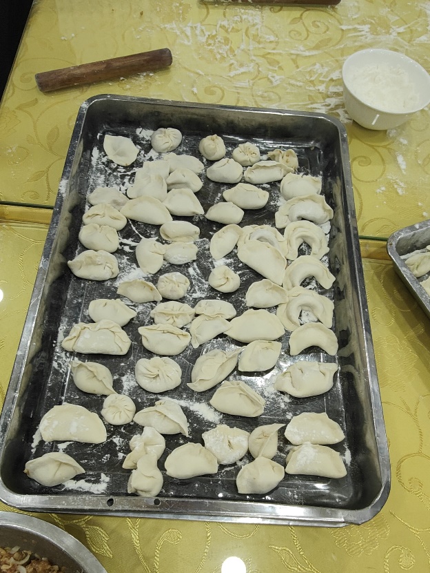 當天下午4點開始,同學們陸續來到餐廳,從布置場地到準備食材每一部分任務工作都井然有序。準備工作完畢后,到了包餃子的環節,同學們有的揉面,有的搟皮,有的在包,有的在學,分工合作,忙得不亦樂乎。同學們值此機會圍繞著生活和工作等方面一起交談,其樂融融。不一會兒,盤盤不同形狀、不同大小的餃子便呈現出來,準備下鍋。等待期間,博21級1班班長趙懷博為大家準備了一些團建游戲,后續同學們也紛紛上前表演節目,展現自我,一時間餐廳內熱鬧非凡。當熱氣騰騰的餃子端上來時,餐廳里面一陣歡呼,同學們紛紛尋找著自己包的餃子,品嘗著美食,分享著快樂。師生之間互相祝福,共賀新年。