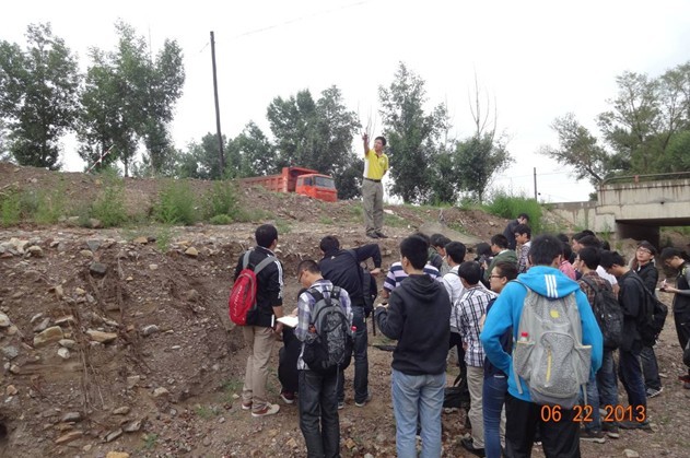 2013年6月21-23日,由《沉積巖石學》教學團隊帶頭人、國家級教學名師朱筱敏教授和《油礦地質學》教學團隊帶頭人吳勝和教授發起,在地球科學學院謝慶賓和季漢成副院長的精心組織下,13位教師和41位研究生對內蒙古涼城縣岱海湖現代三角洲沉積進行了實地考察。
