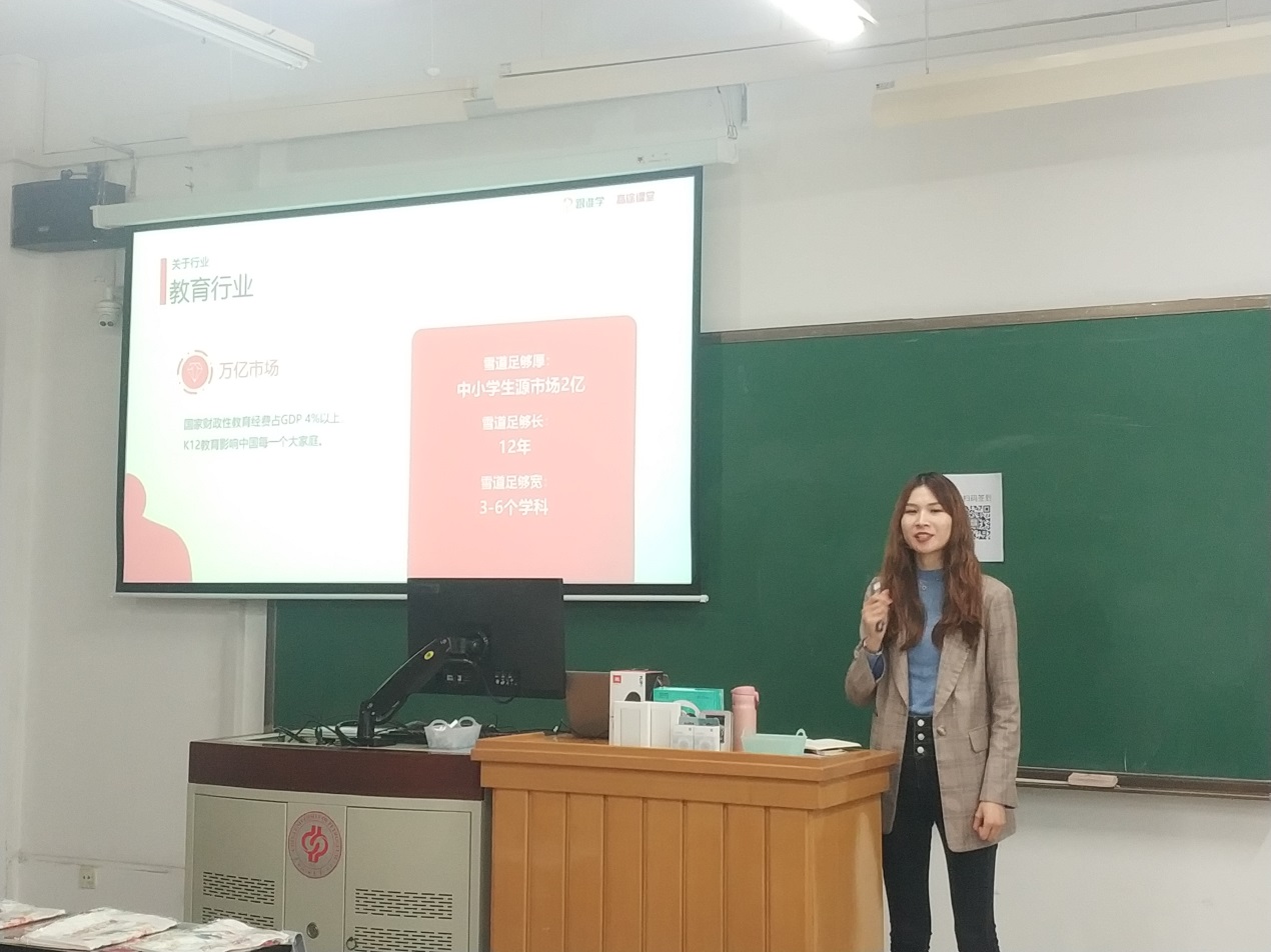 為了給畢業(yè)生提供更好的就業(yè)服務(wù),給畢業(yè)生與用人單位創(chuàng)造交流平臺(tái),地球科學(xué)學(xué)院月2020年11月19日晚在三教410舉辦2021屆管培生專場(chǎng)招聘宣講會(huì),跟誰學(xué)-高途課堂人力資源管理負(fù)責(zé)人劉巖、傅凱陽應(yīng)邀進(jìn)行宣講。