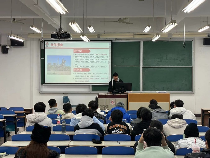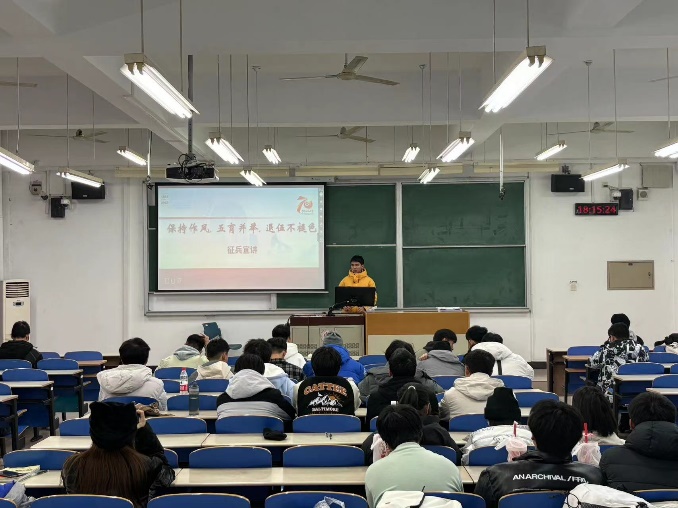為扎實推進學習貫徹習近平新時代中國特色社會主義思想主題教育,增強學生國防安全觀念,貫徹落實國家征兵政策,幫助學生全面了解應征入伍政策,鼓勵和引導學生響應國家號召投身軍營,12月3日,地球科學學院面向2023級本科新生舉辦“國防教育暨征兵政策宣講會”。地球科學學院2023級新生輔導員馬文龍參加宣講會,特別邀請學校石大國防社主席、優秀退役大學生代表張健宇和劉堯做征兵宣講和心得分享,學院全體新生參加宣講會。