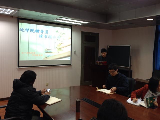 10月31日下午,地球科學學院在地質樓1105組織開展了“輔導員讀書報告會”。地學院讀書報告會每兩周舉辦一次,旨在加強輔導員的思想交流,促進輔導員能力的全面提高。地學院黨委書記劉洛夫、團委書記周學智及全體輔導員參加了此次會議。